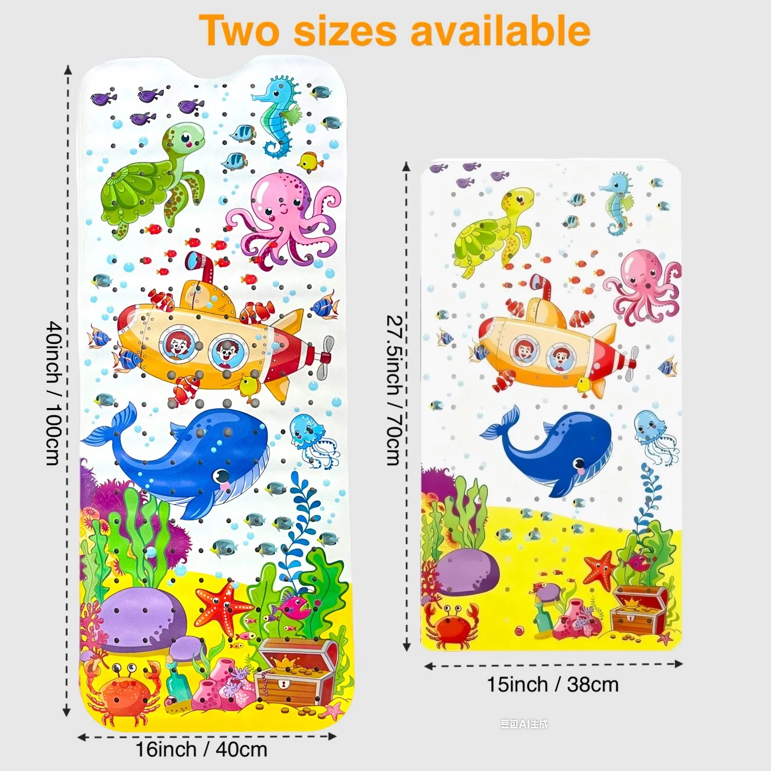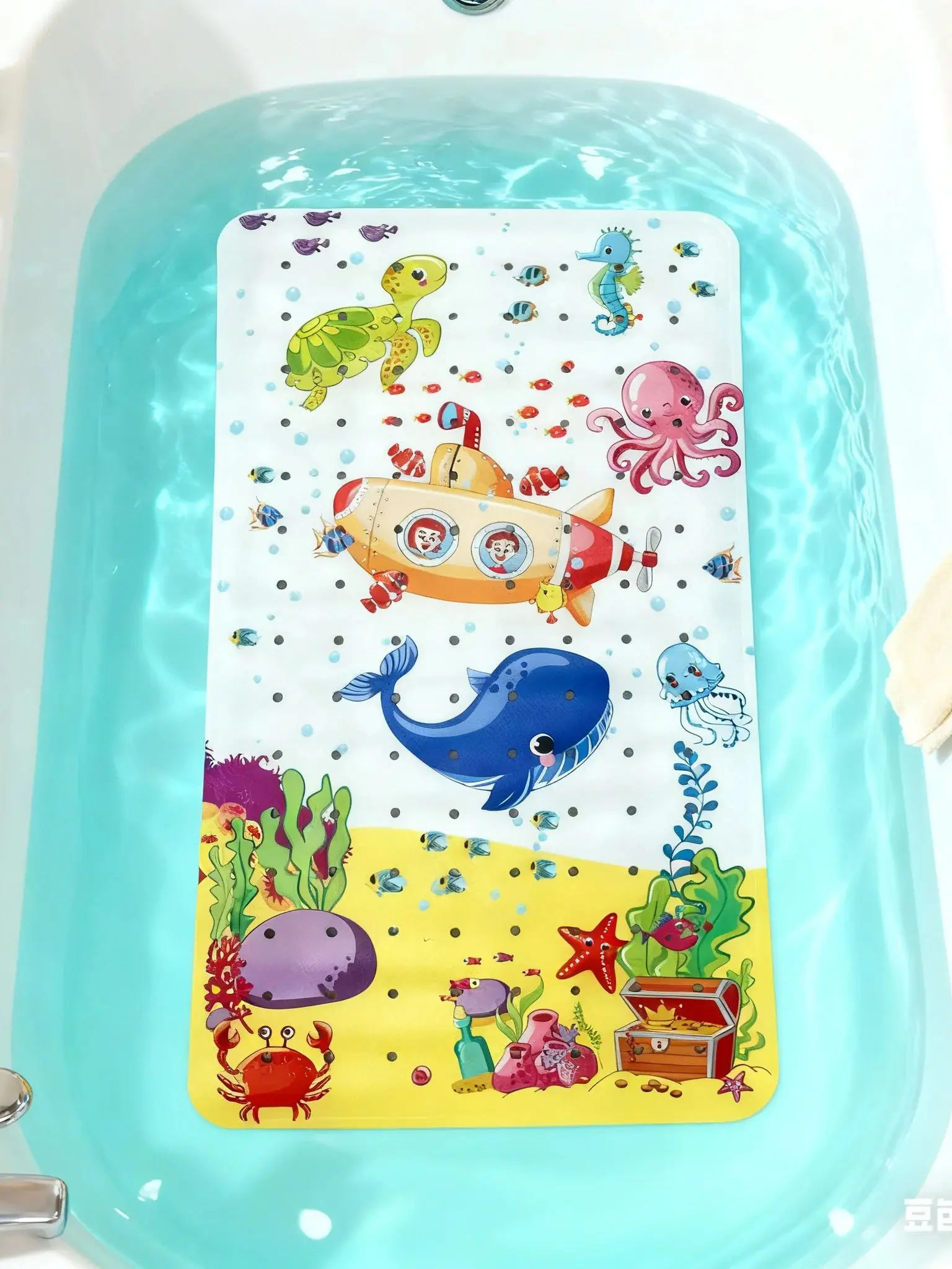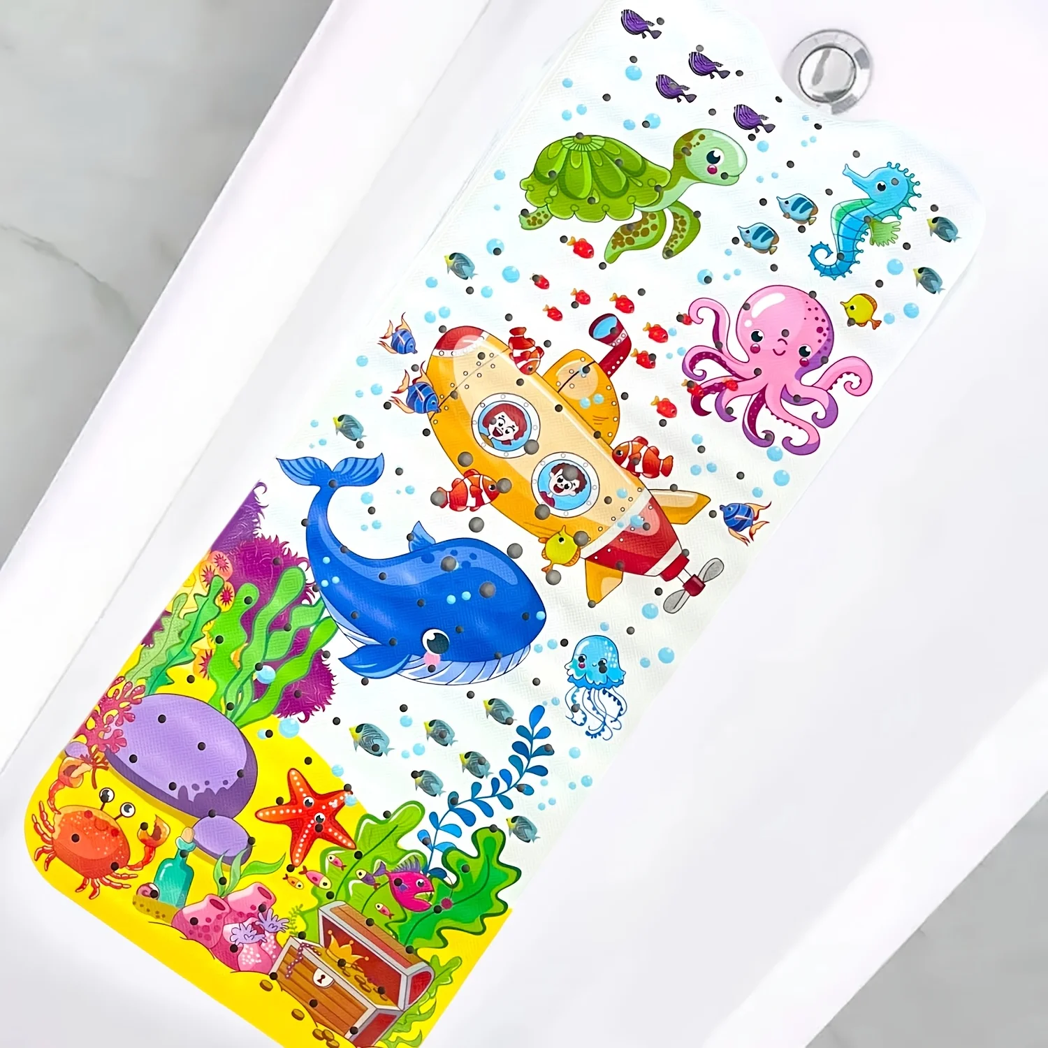1pc tapete de banho do bebê para banheira para crianças, tapete de banheira dos desenhos animados antiderrapante com furos de drenagem & ventosas, mundo subaquático