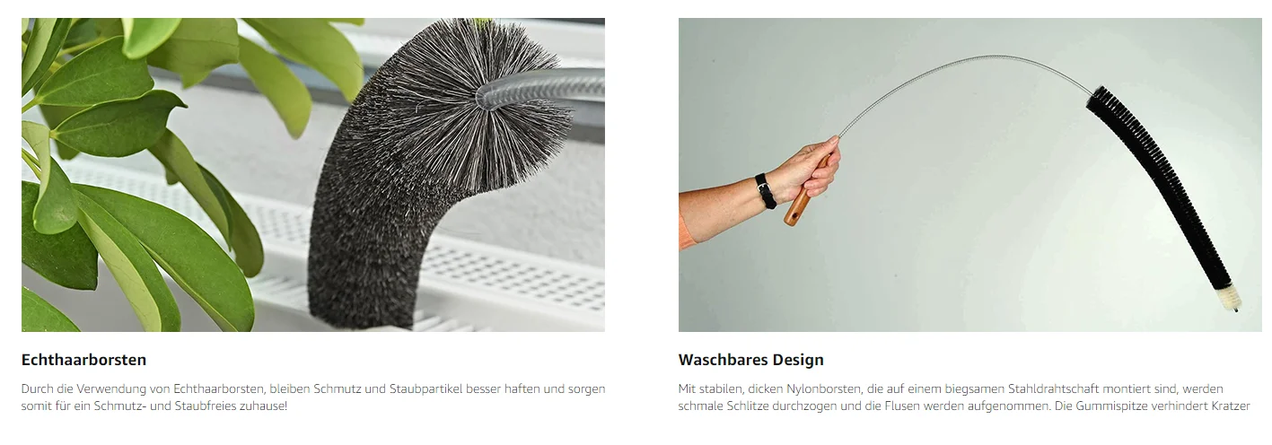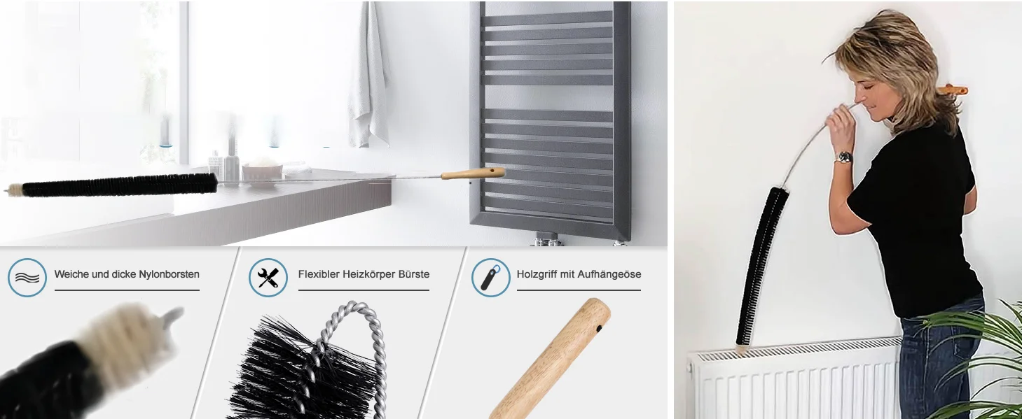 1PCS Escova para radiador - 120 cm - Escova para radiador com cerdas de cabelo de cabra - Ideal para limpeza de radiadores planos