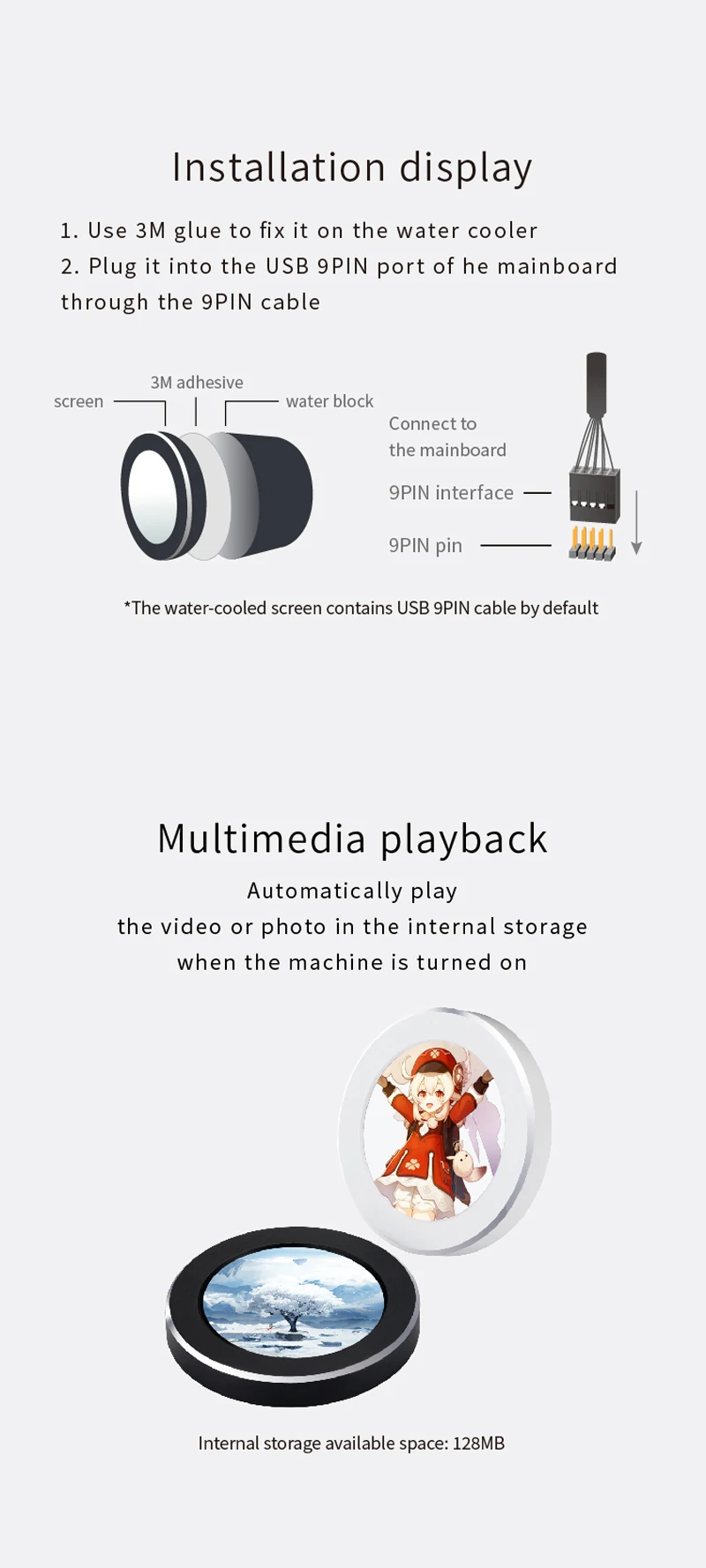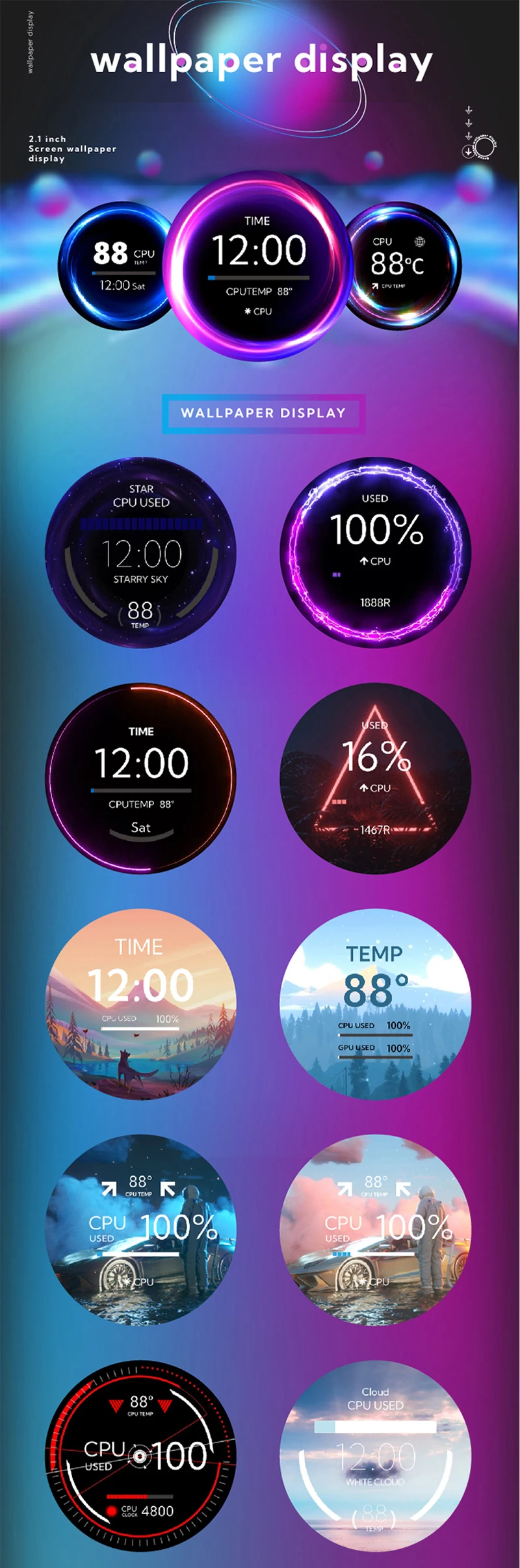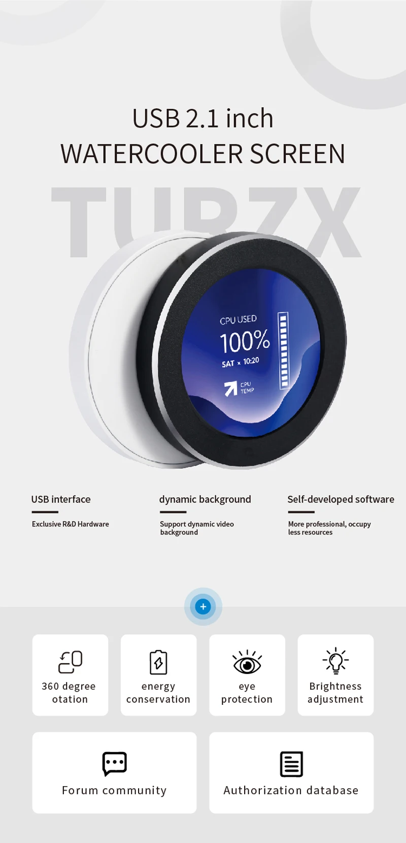 Tela secundária IPS de 2,1 polegadas, tela redonda refrigerada a água, 480x480, CPU GPU RAM, monitoramento HDD com software TURZX para computador PC