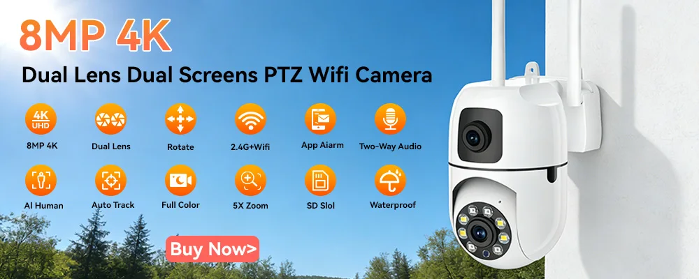 Câmeras de vigilância wi-fi 8mp câmera ip hd 1080p ir visão noturna colorida proteção de segurança movimento áudio bidirecional câmera externa