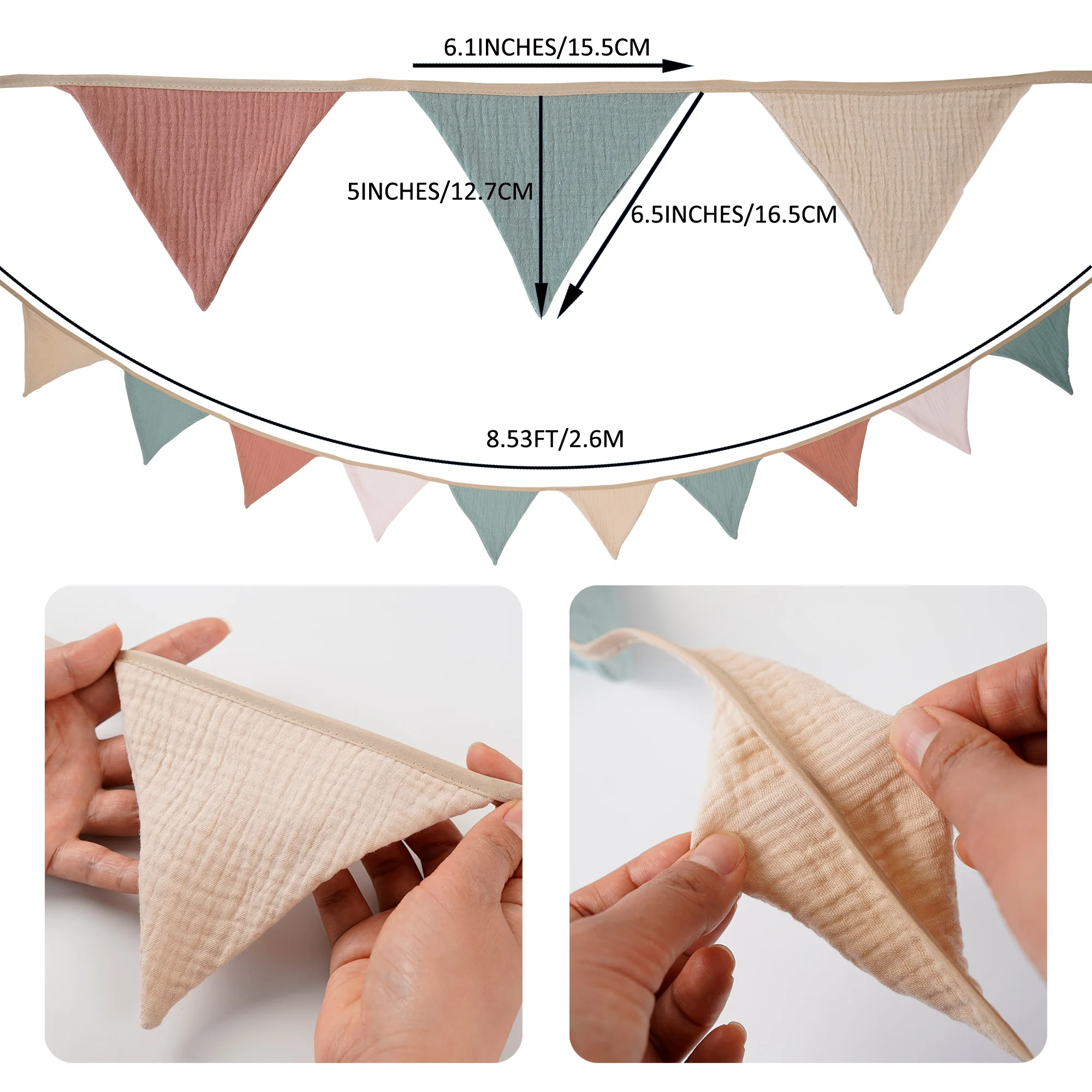 - > 2.6m berçário tecido bunting 10 triângulo flâmula bandeiras festa decoração banner casa chá de bebê carnaval guirlanda