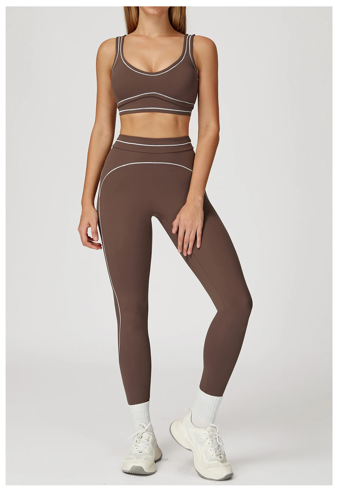 - > 2 pçs conjunto de yoga conjunto de fitness treino feminino ginásio treino atlético wear feminino yoga terno sutiã esportivo cintura alta leggings roupas esportivas