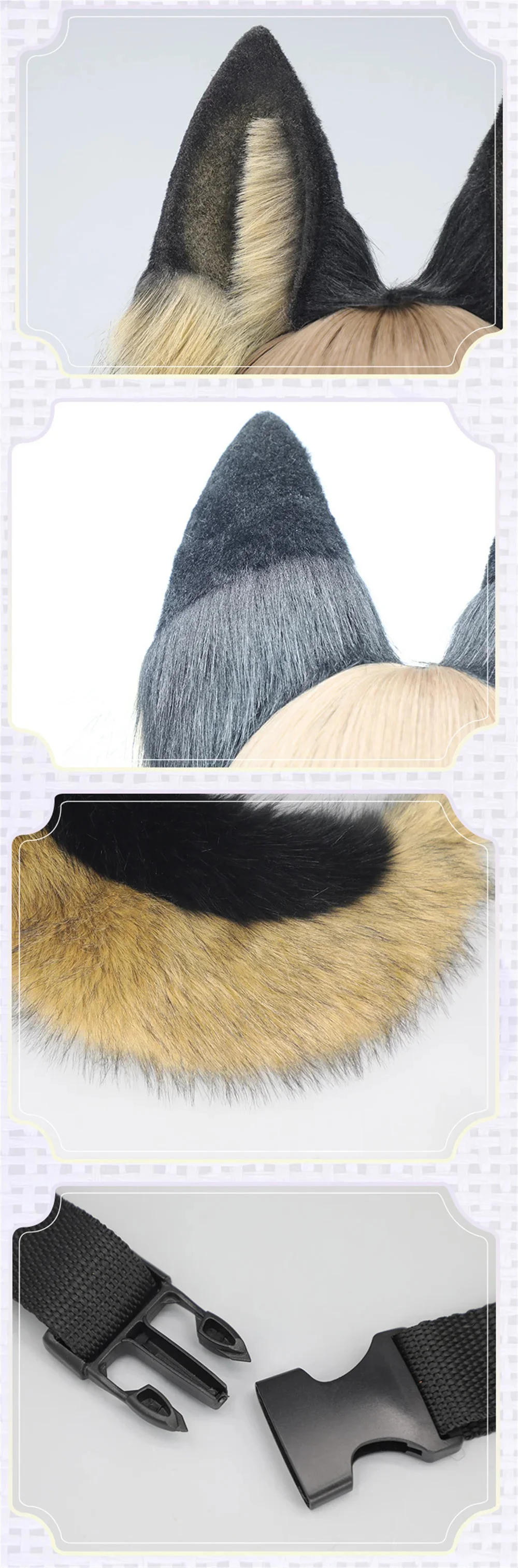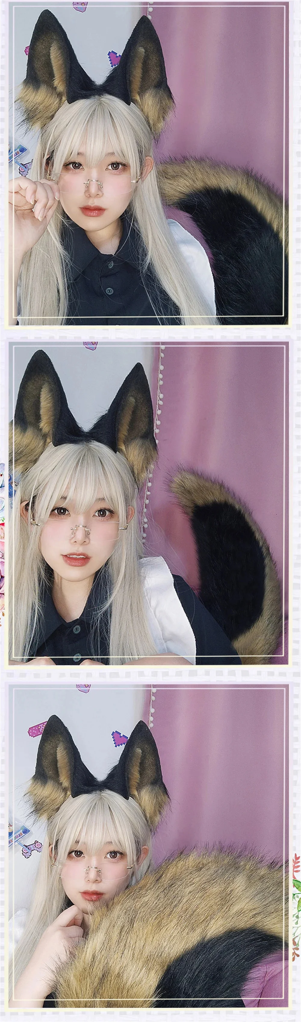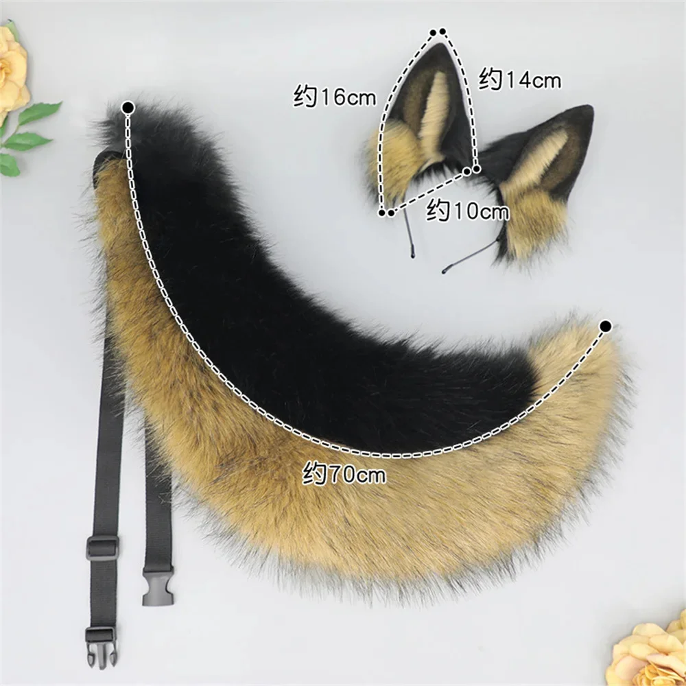 2 pçs/set animal fursuit orelhas cauda acessórios de fantasia de halloween cosplay pelúcia lobo caudas orelhas de raposa faixa de cabelo peludo cão cos cauda