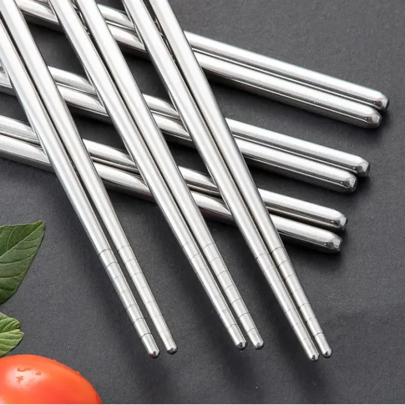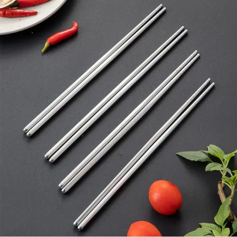 20/2 pçs pauzinhos de aço inoxidável doméstico redondo metal chop varas japonês sushi comida vara cozinha talheres conjuntos