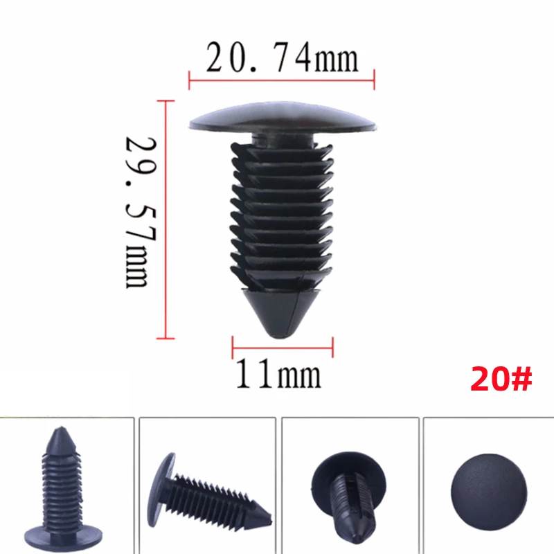 - > 20 peças para 8mm 9mm 10mm 11mm clipes retentores de para-lama de carro auto telhado bagageira forro rebite guarnição painel clipe fixadores de parafuso de plástico