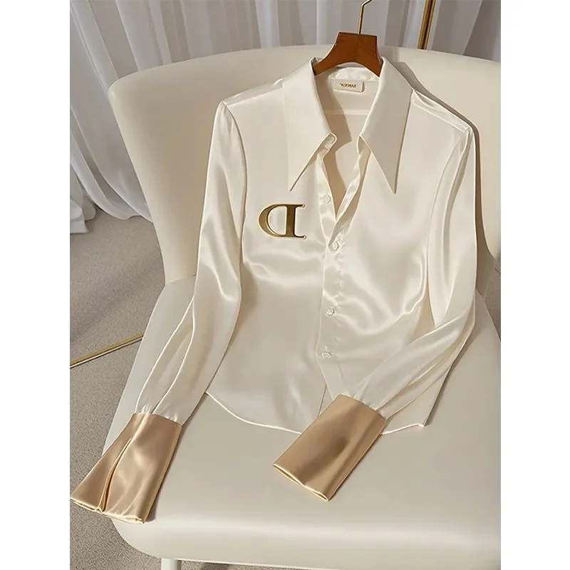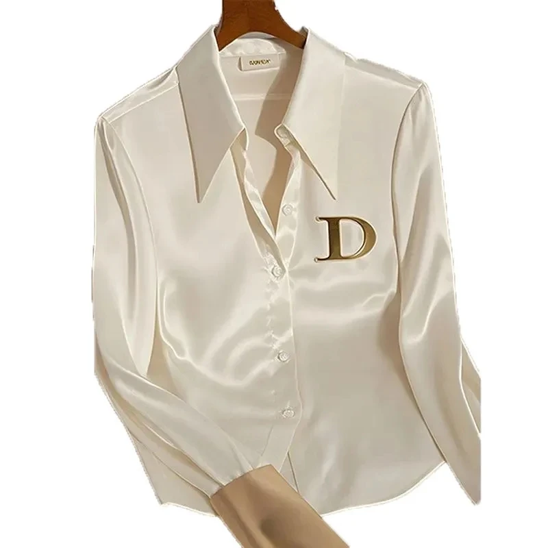 2024 camisa branca feminina design sentido primavera outono moda carta camisas de manga longa topos blusa de peito único casaco feminino