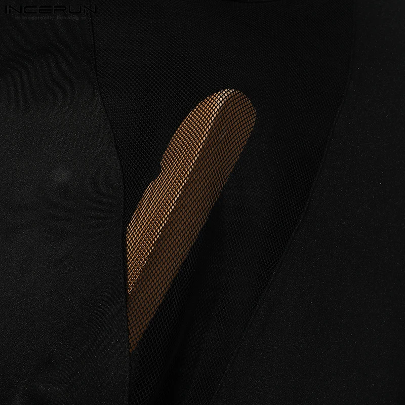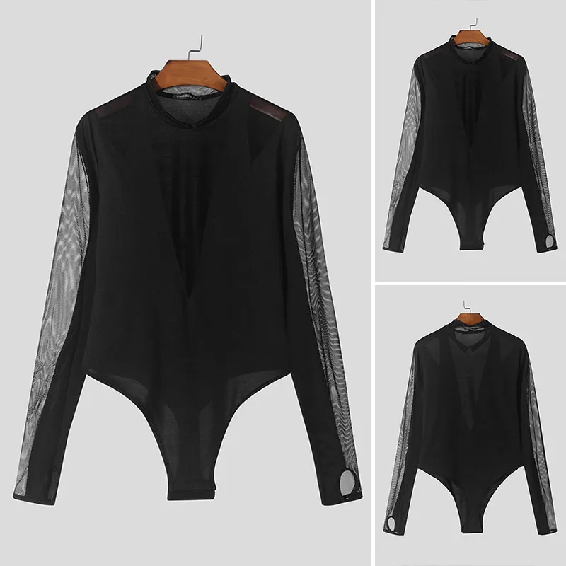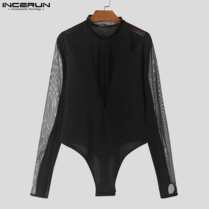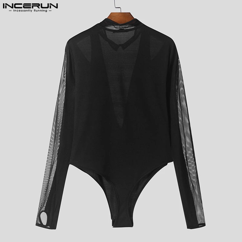 - > 2024 incerun masculino laço emenda manga longa bodysuits causal cor sólida bem ajustado macacão oco para fora confortável homewear
