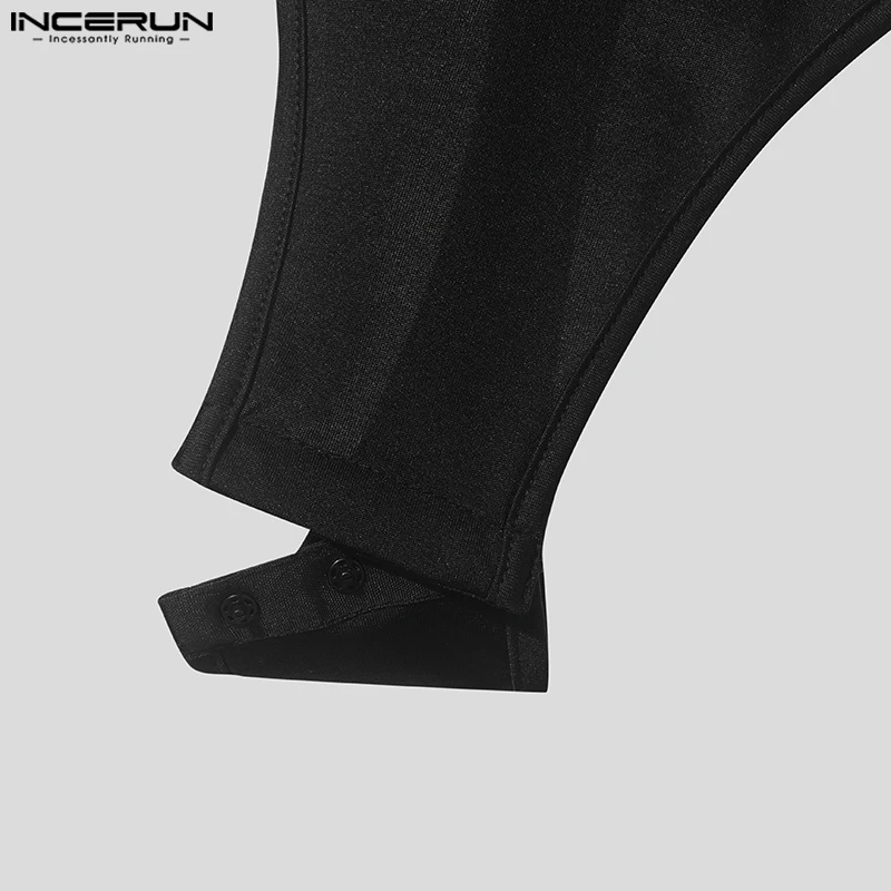 2024 incerun masculino laço emenda manga longa bodysuits causal cor sólida bem ajustado macacão oco para fora confortável homewear
