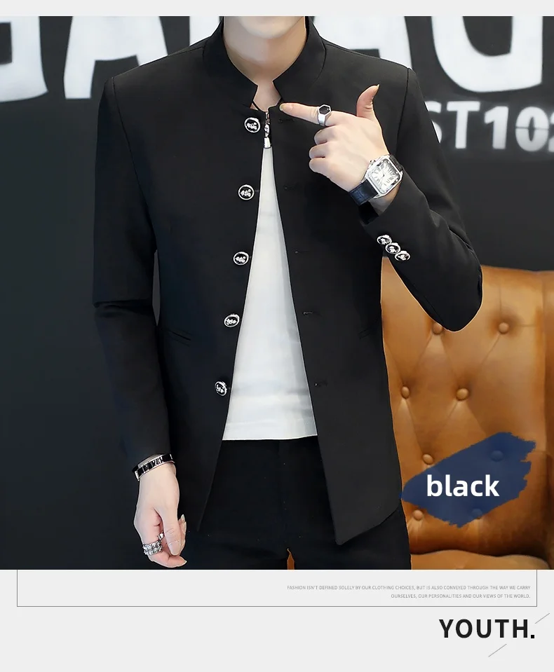 2024 masculino fino ajuste manga longa terno casual tendência coreana gola moda bonito terno masculino