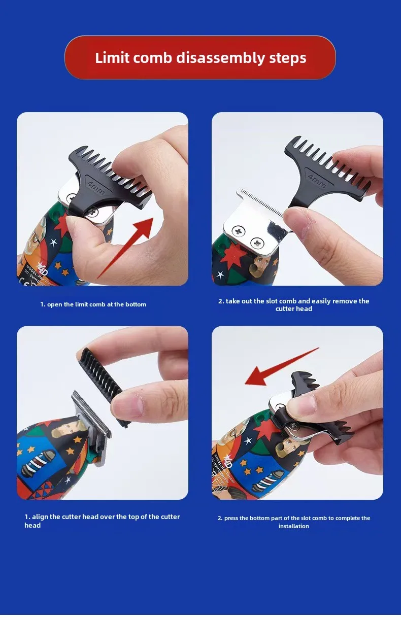 Embalagem: Pente de limite de carregador USB para máquina de cortar cabelo (1 2 3 4 5 mm) Escova de limpeza