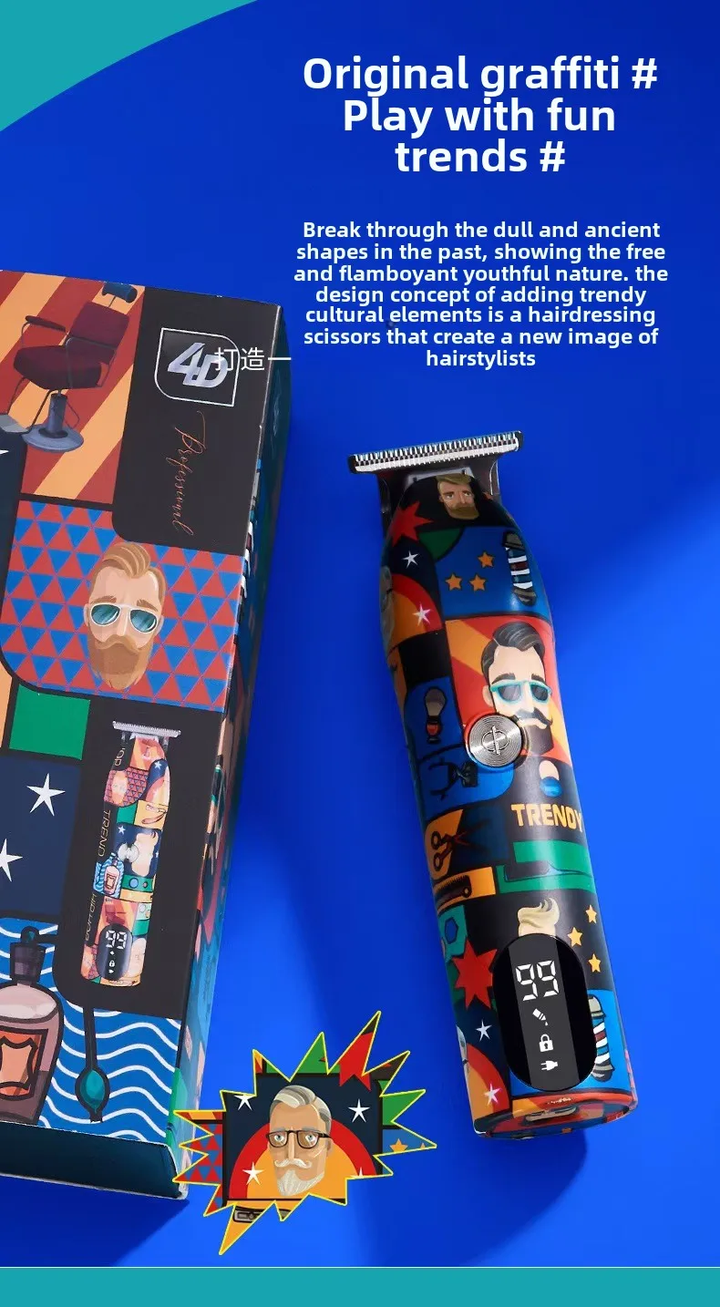 2024 nova máquina de cortar cabelo elétrica graffiti e barbeador conjunto profissional casa cabeça óleo escultura na moda barbeador máquina de cortar cabelo