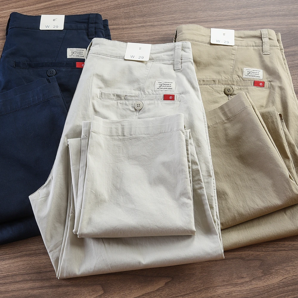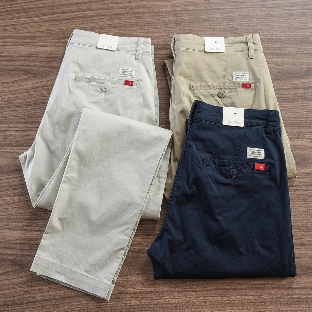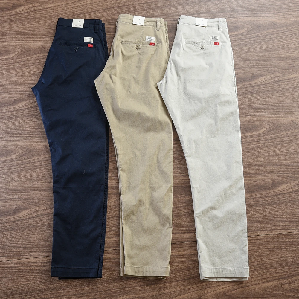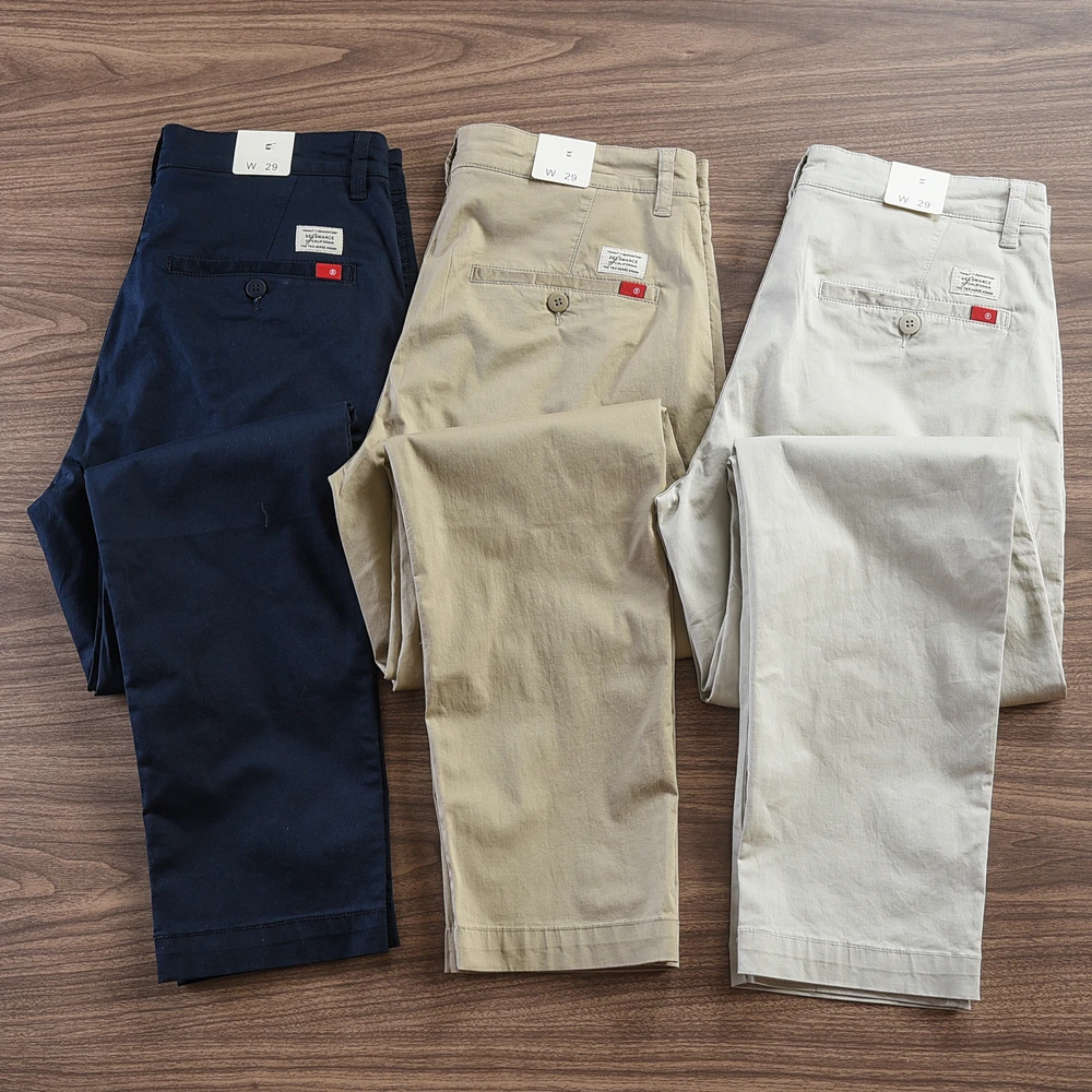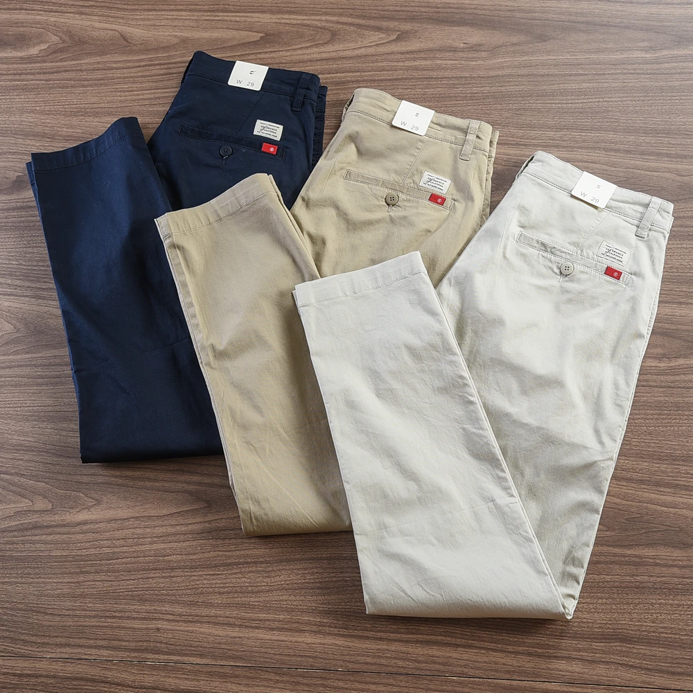 - > 2024 verão novo americano retro fino micro elasticidade calças casuais simples 97% algodão fino chino negócios calças retas