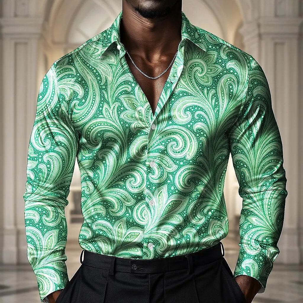 - > 2025 masculino paisley flores étnicas camisa de manga longa vintage retro férias uso diário turndown impressão 3d botão acima camisas