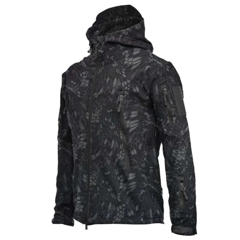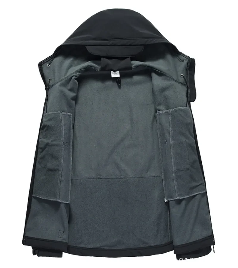- > 2025 nova moda pele de tubarão jaqueta de casca macia masculina tático à prova de vento jaqueta impermeável jaqueta masculina com capuz S-XXXXL
