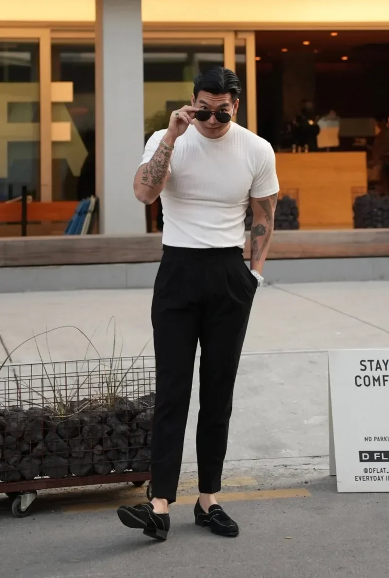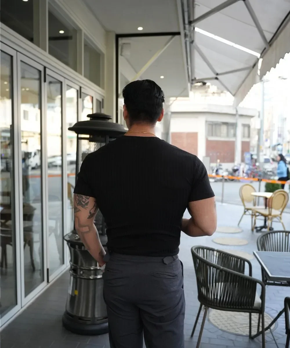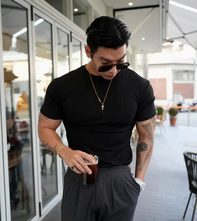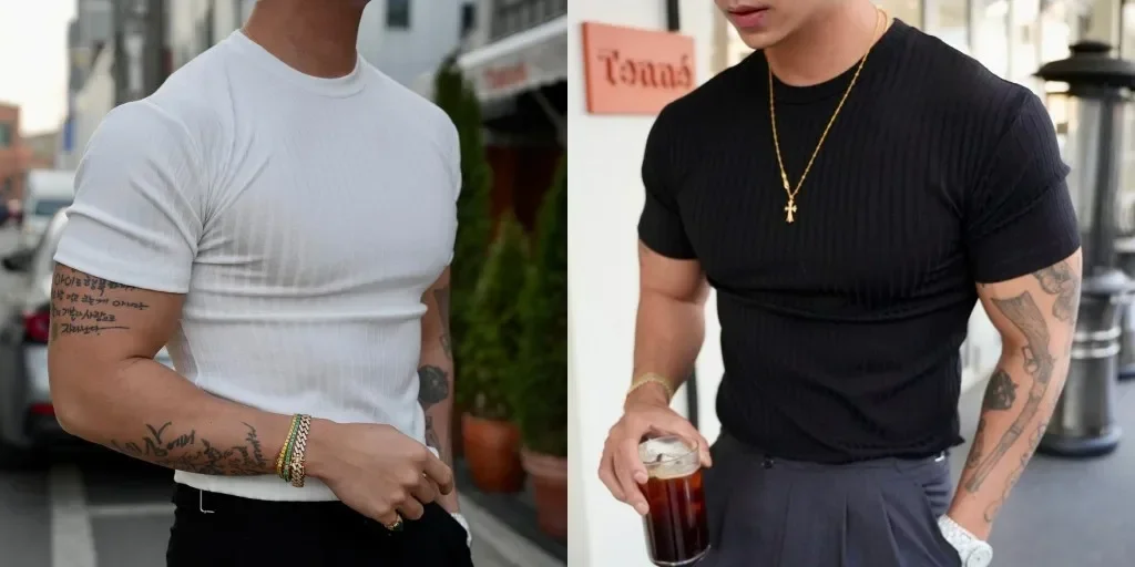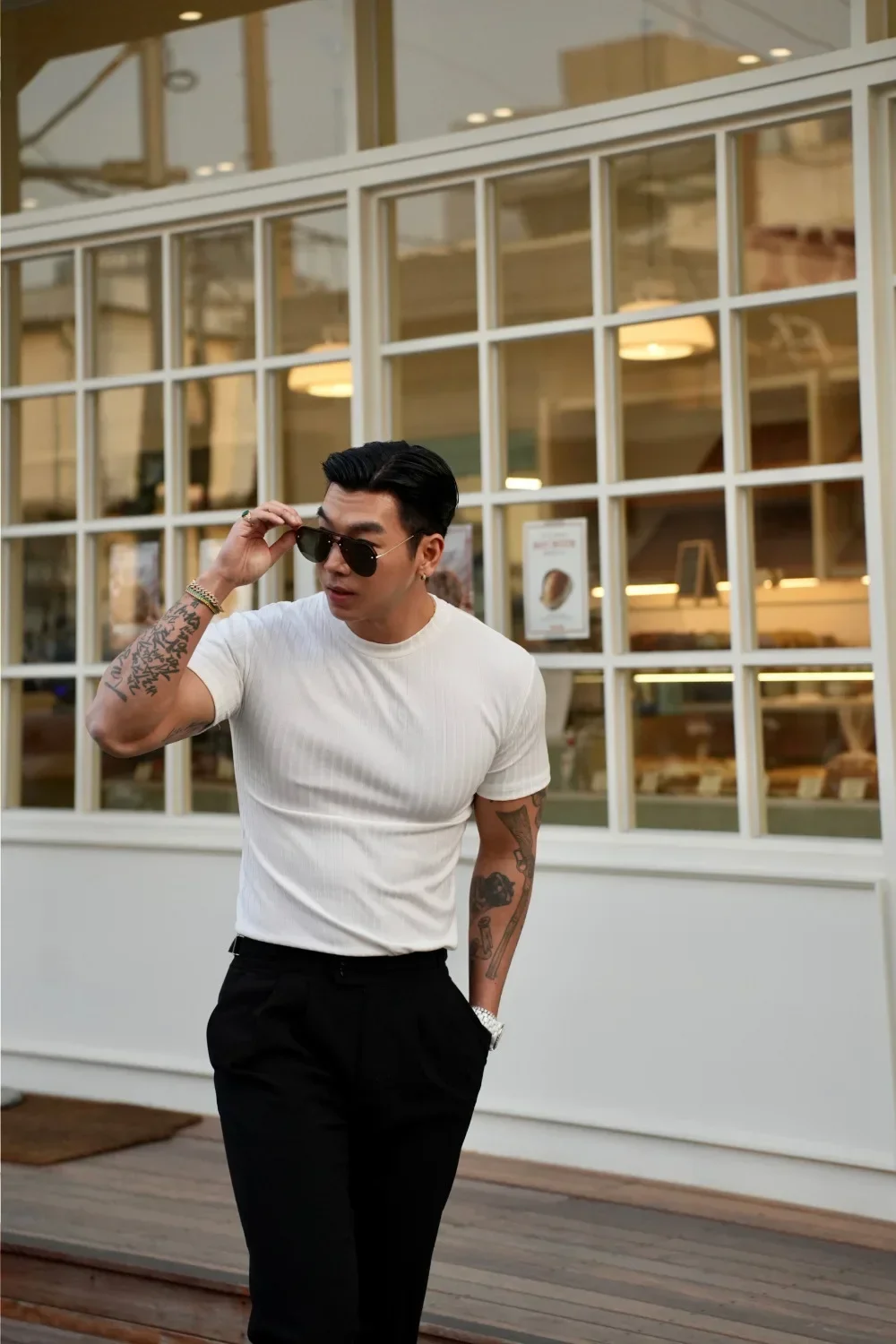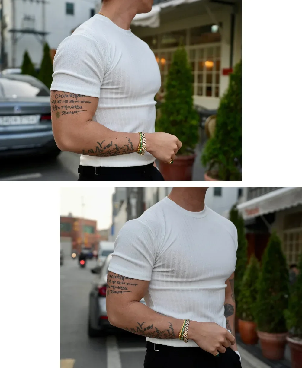 - > 2025 nova moda treinamento de fitness camiseta masculina verão esportes lazer em torno do pescoço elástico manga curta listra vertical camiseta