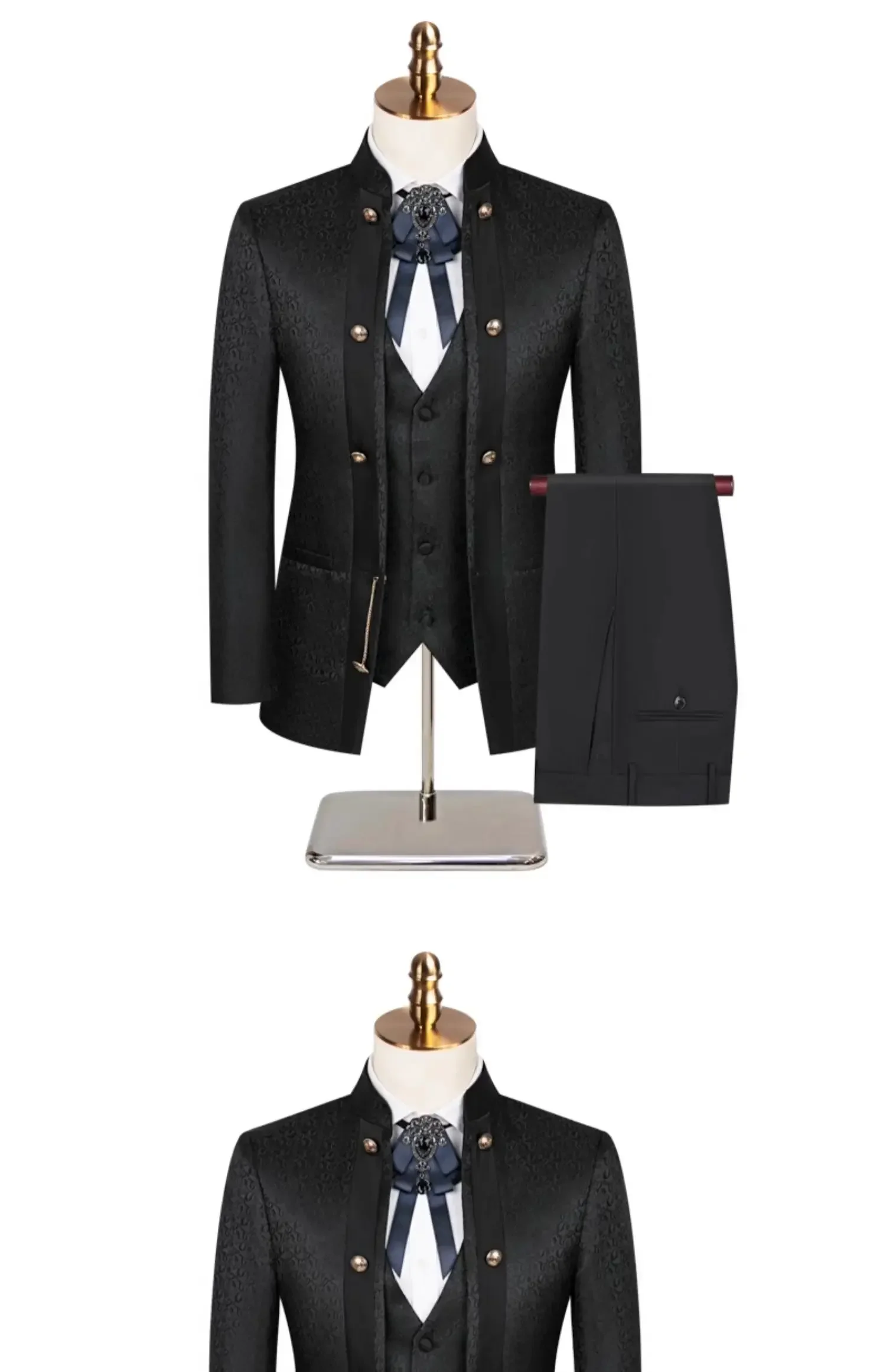 - > 2025 novo anfitrião de casamento desempenho terno masculino vestido de três peças padrão floral botânico blazer para homem com calças e colete