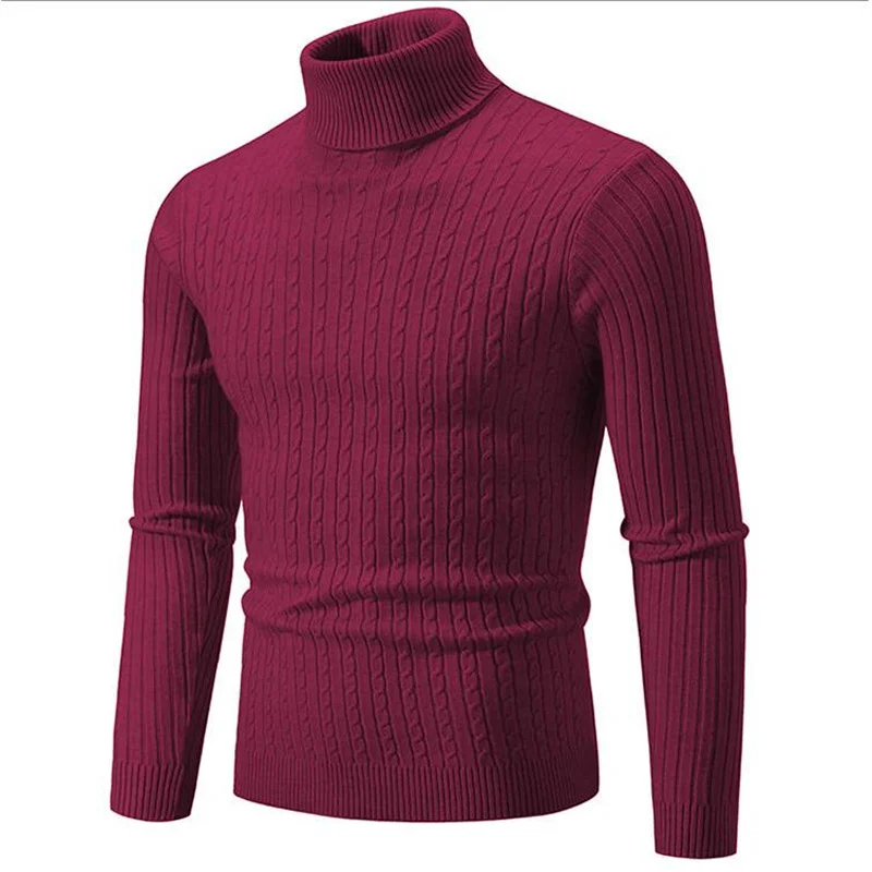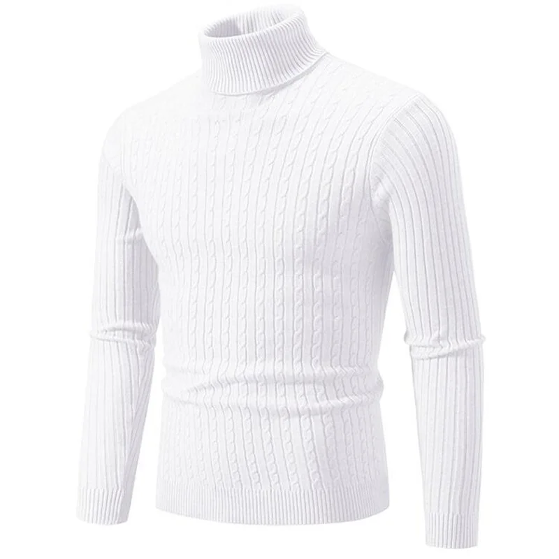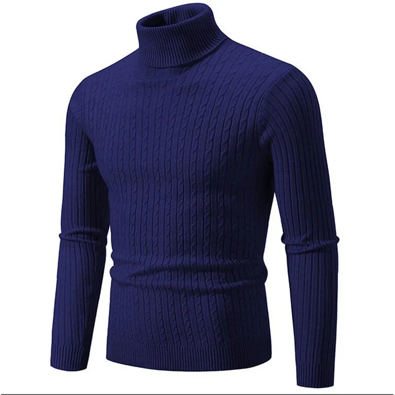 2025 novos homens cor sólida camisola de gola alta preto/branco/azul real moda simples masculino casual pulôver topos