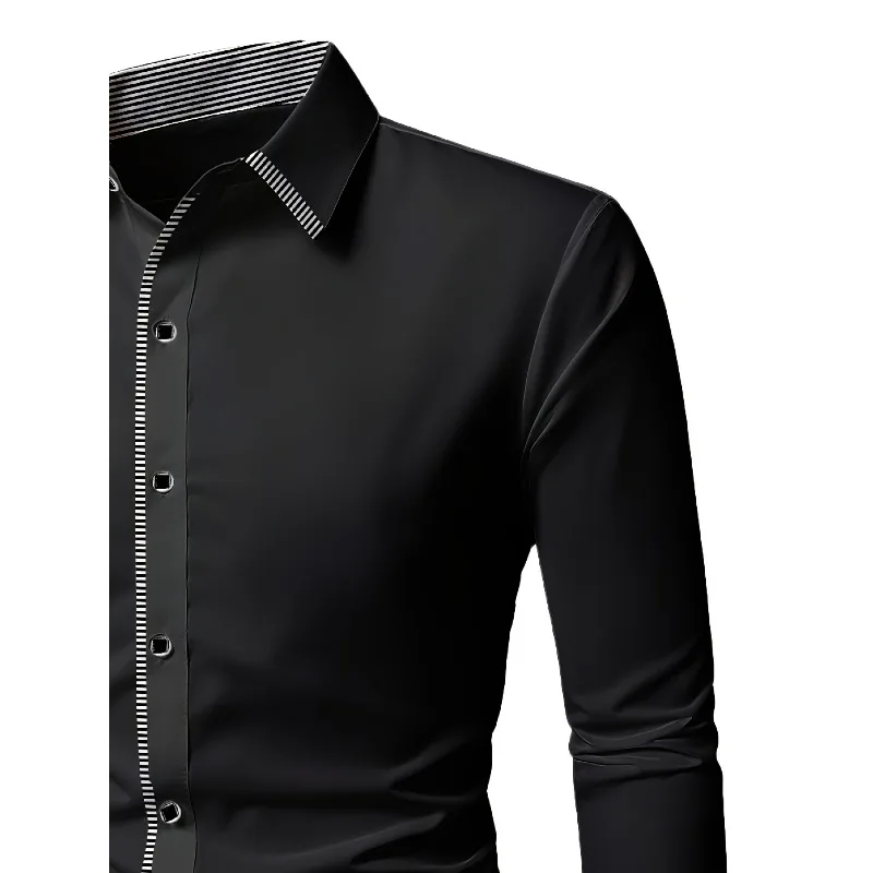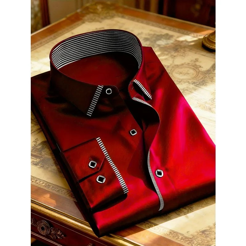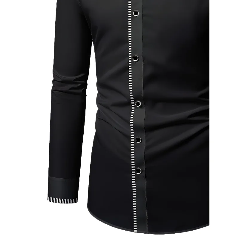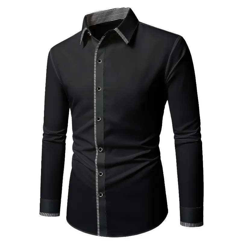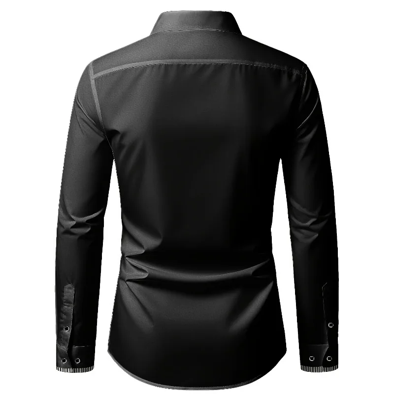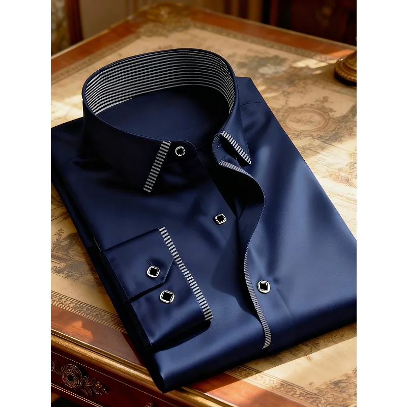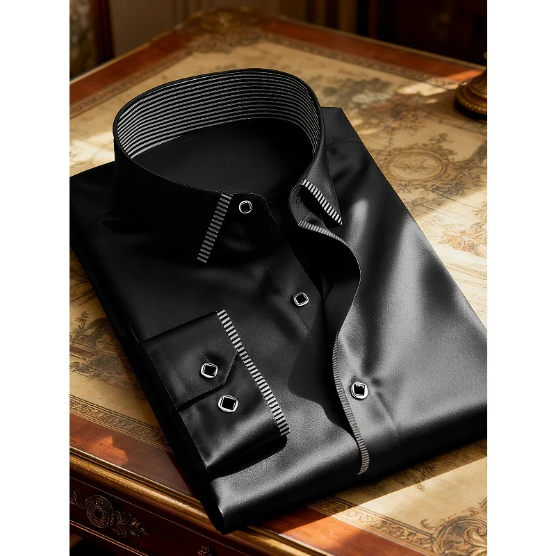 - > 2025 novos homens retalhos camisa moda vestido smoking manga longa inteligente casual quatro temporada homem micro camisas elásticas