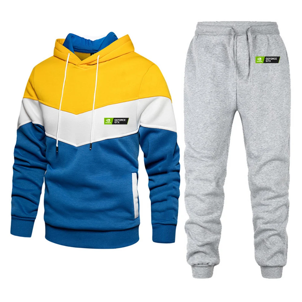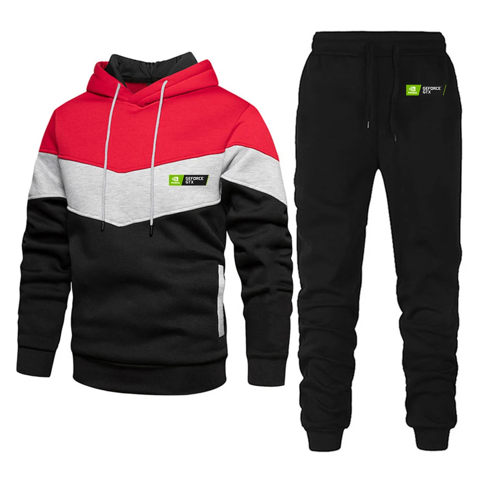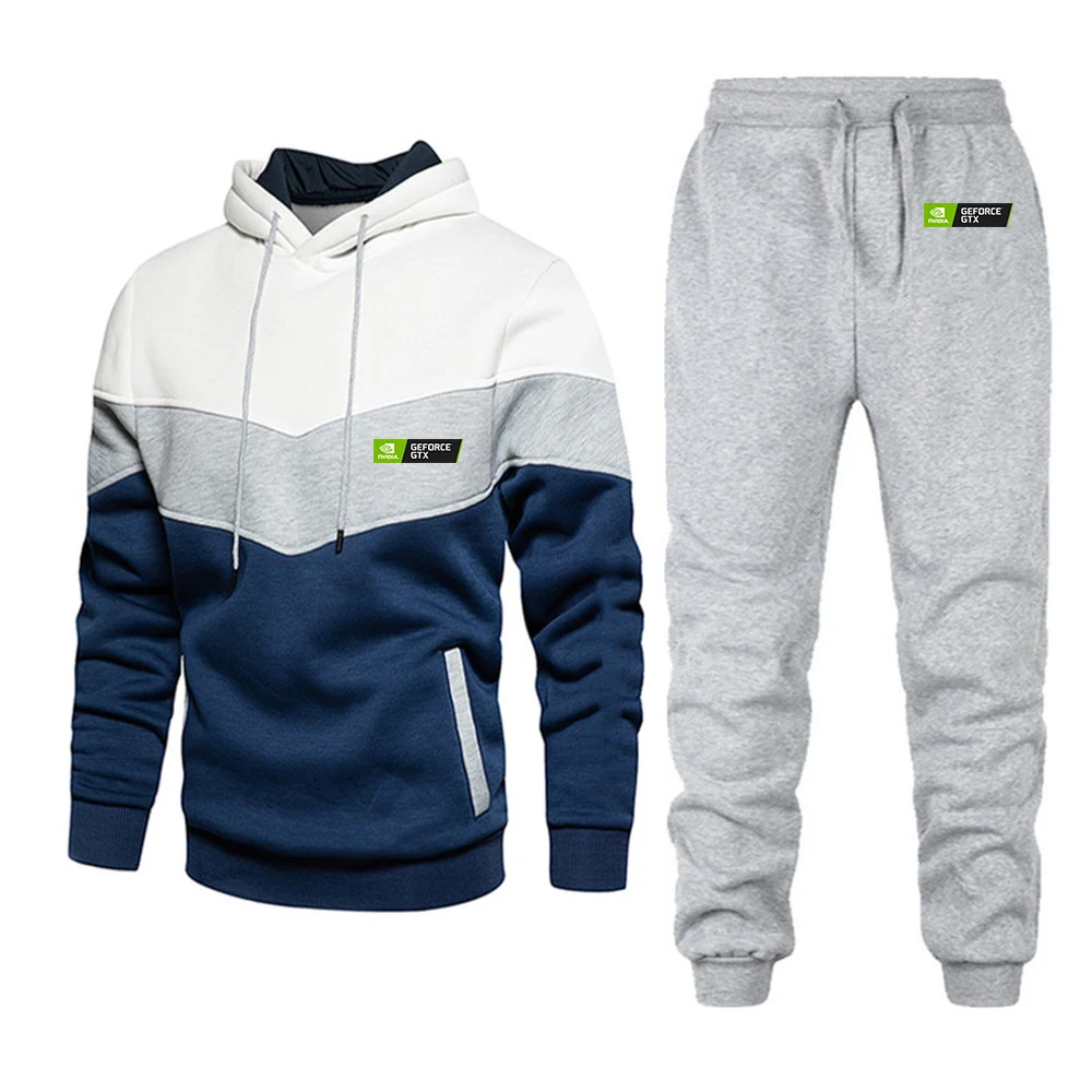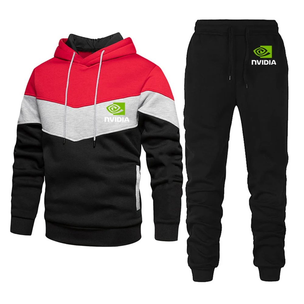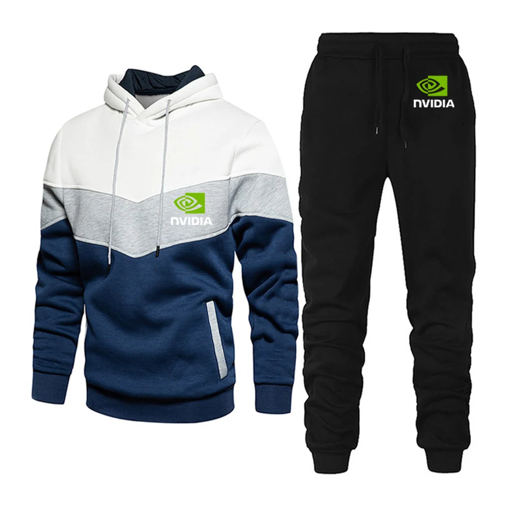 - > 2025 NVIDIA Novos Homens Primavera e Outono Impressão Confortável Casual Três Cores Costura Patchwork Hoodie Top + Calça Conjunto