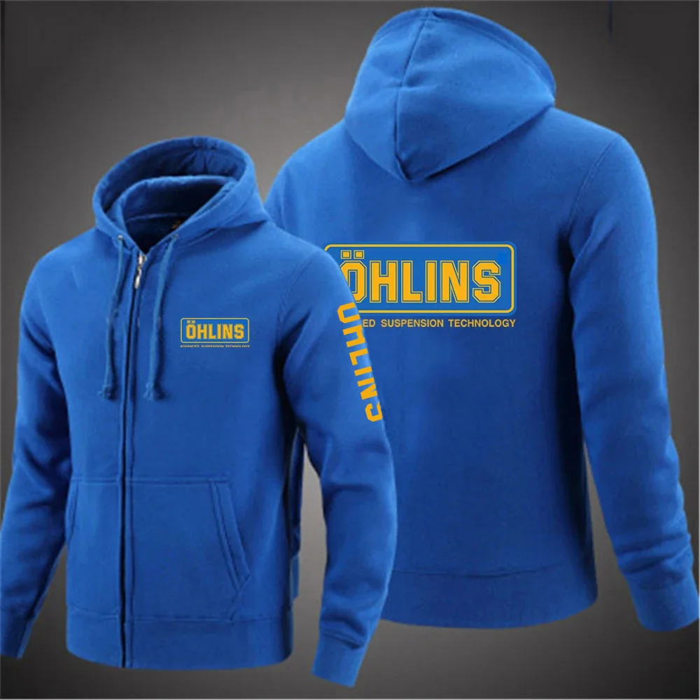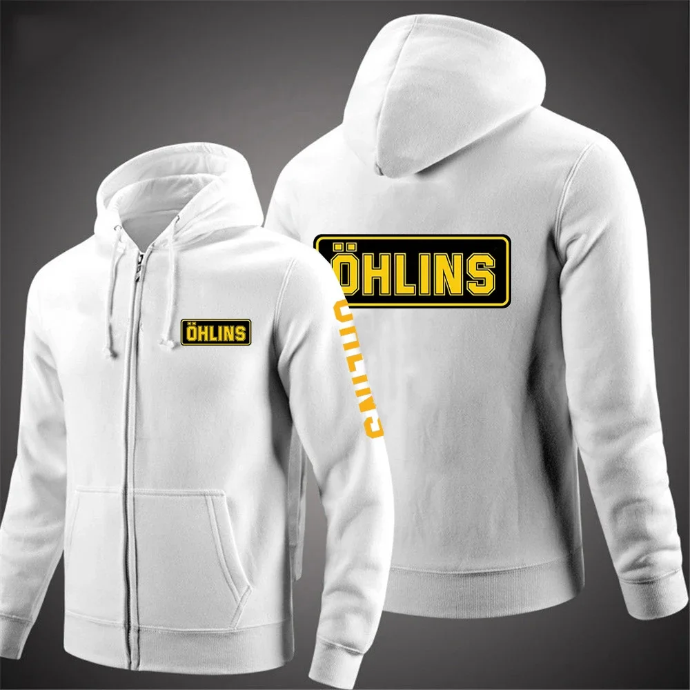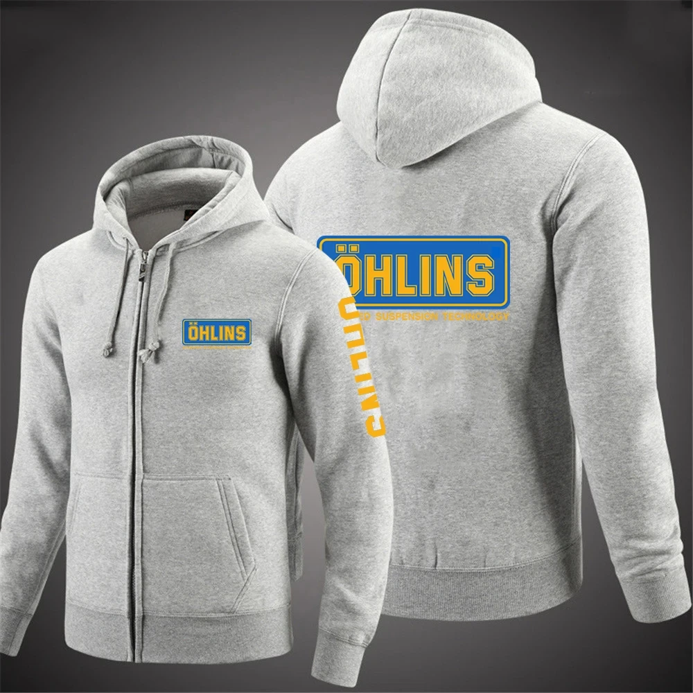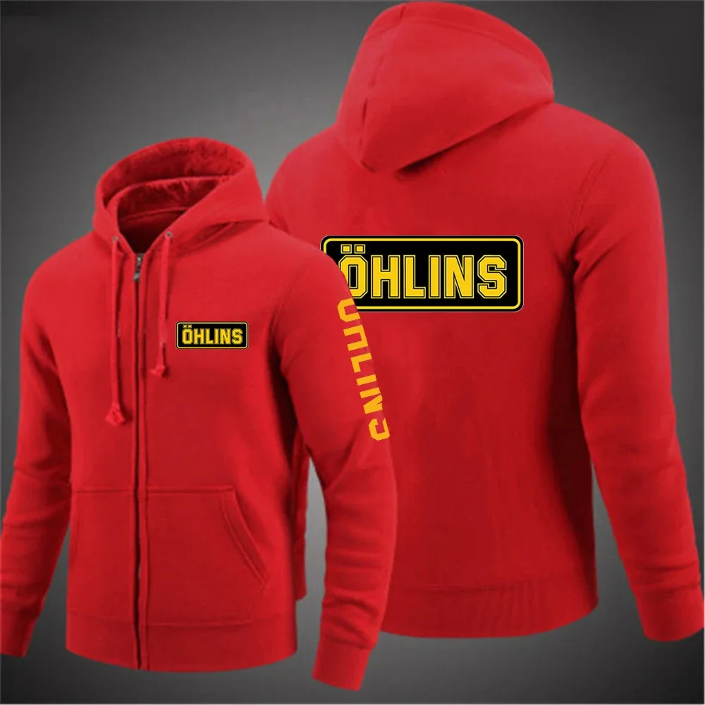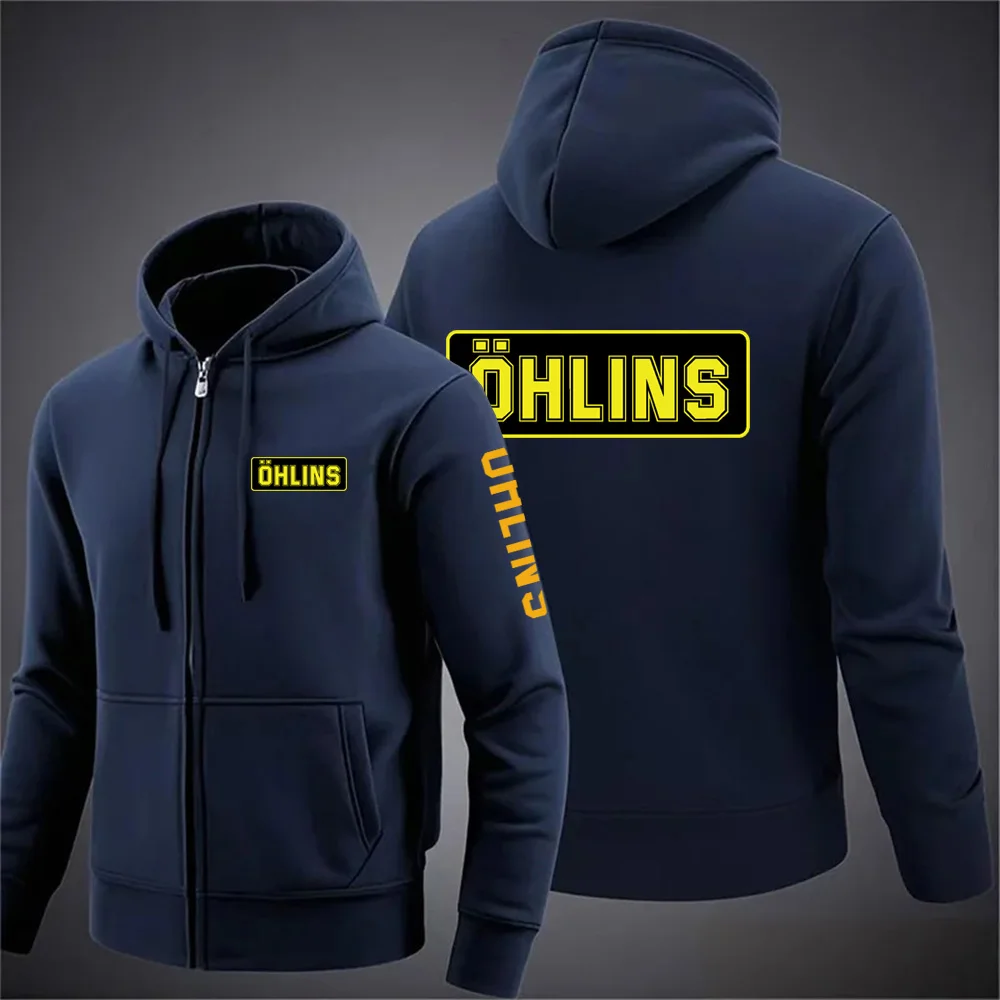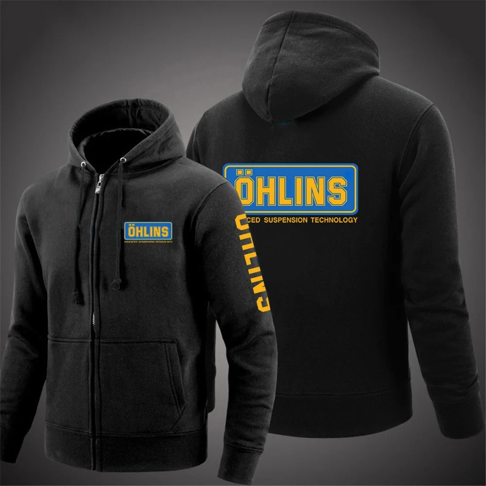 - > 2025 Ohlins Suspension Masculino Nova Impressão Respirável Cor Sólida Zíper Com Capuz Jaqueta de Manga Longa Casual Pulôver Moletom