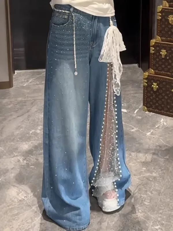 2025 outono inverno calças jeans femininas malha retalhos y2k streetwear baggy jeans grunge japonês harajuku cowboy maré designer