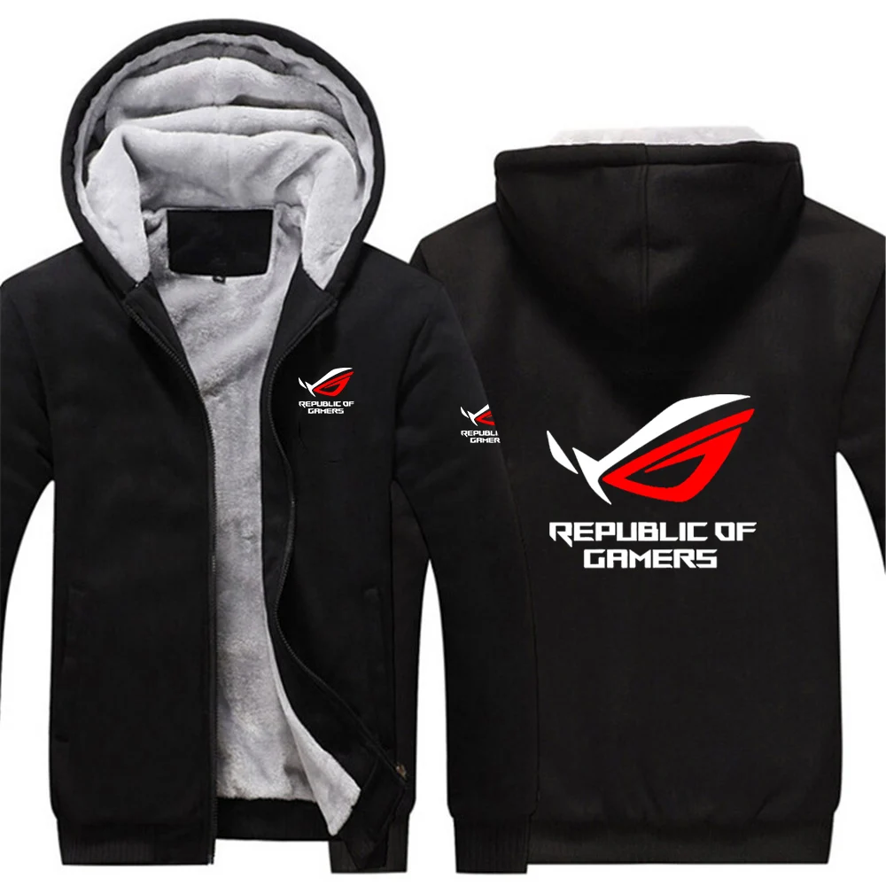- > 2025 outono inverno cardigan manga longa engrossado hoodies masculino rog república dos jogadores impressão à prova de frio casacos com capuz de rua alta