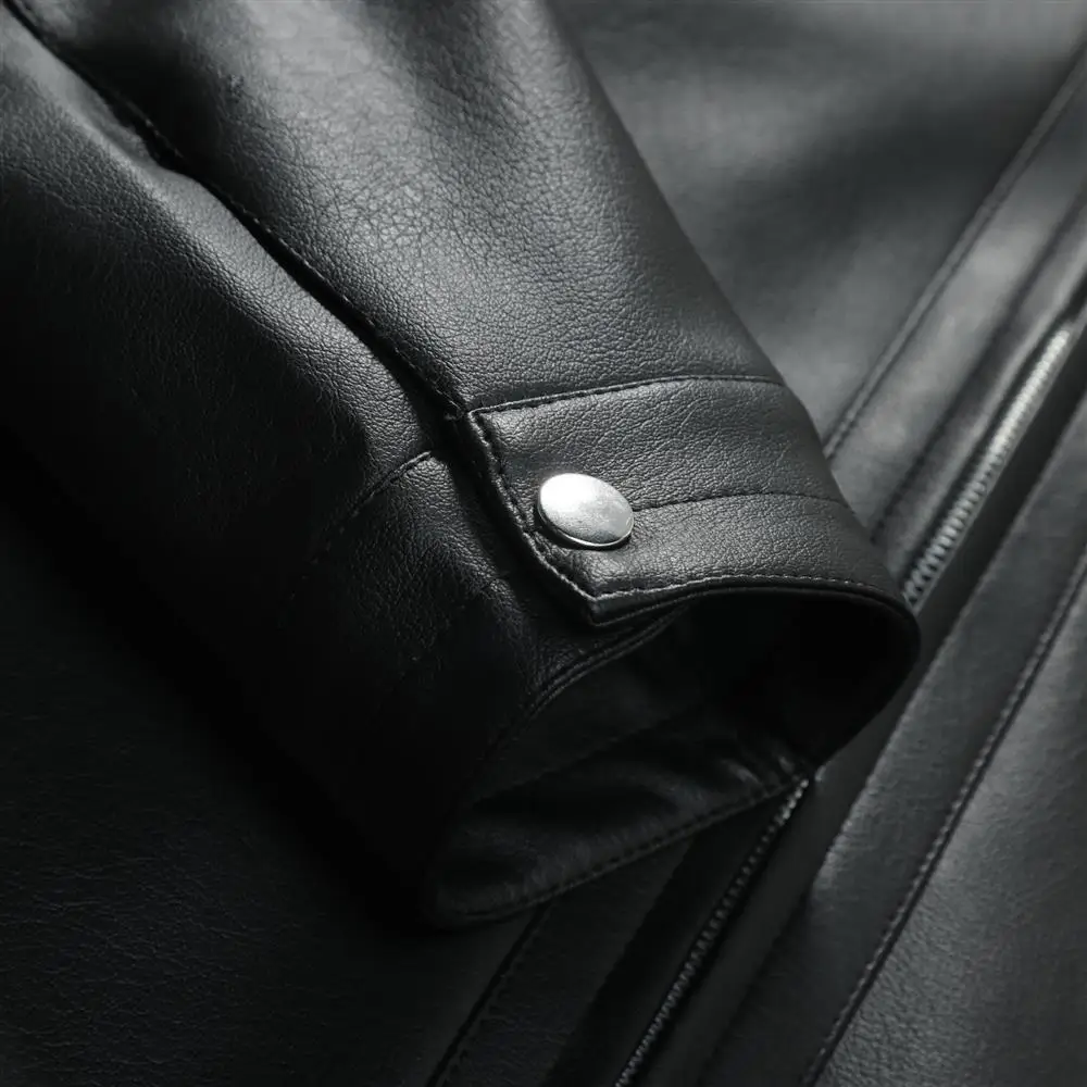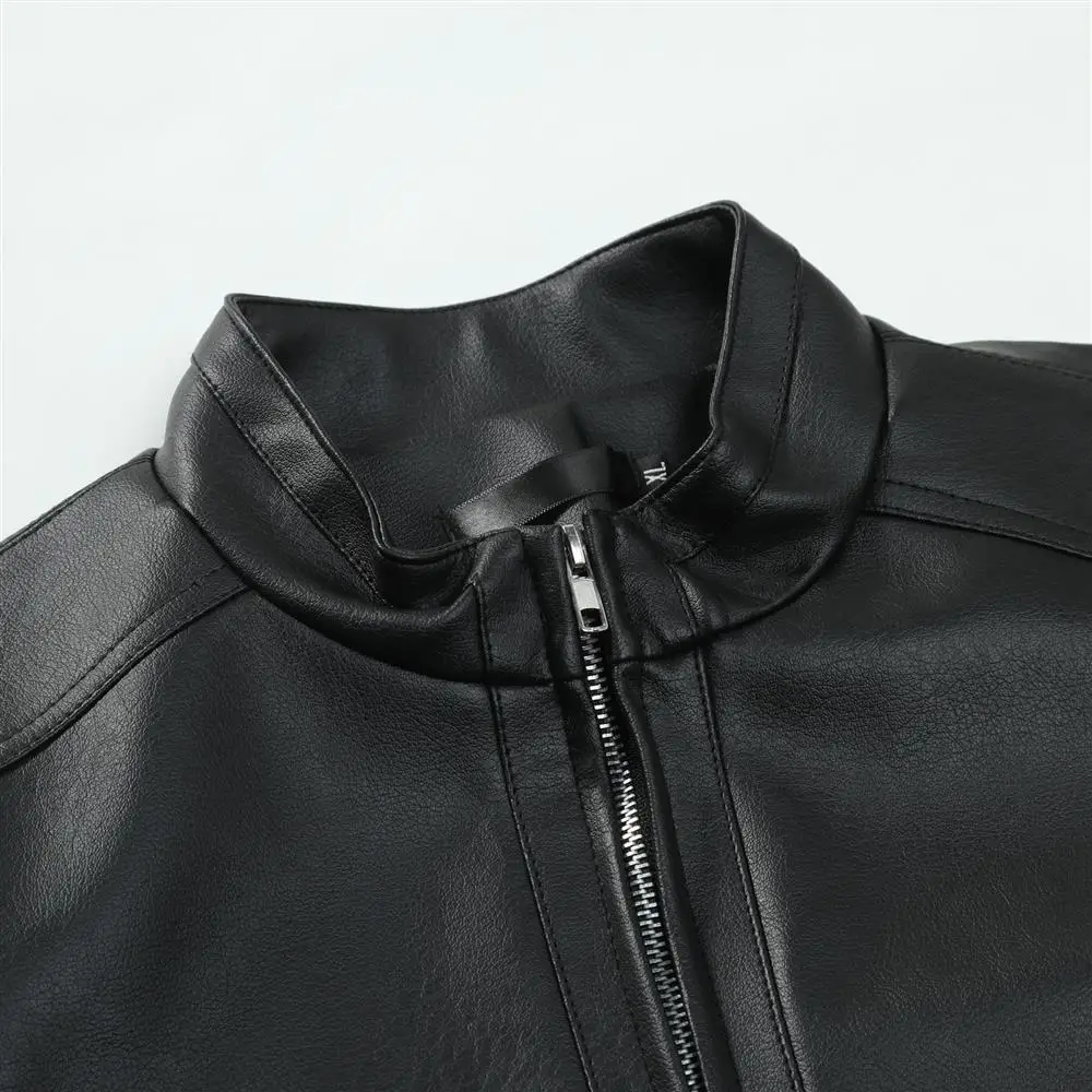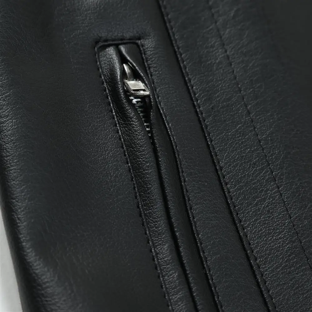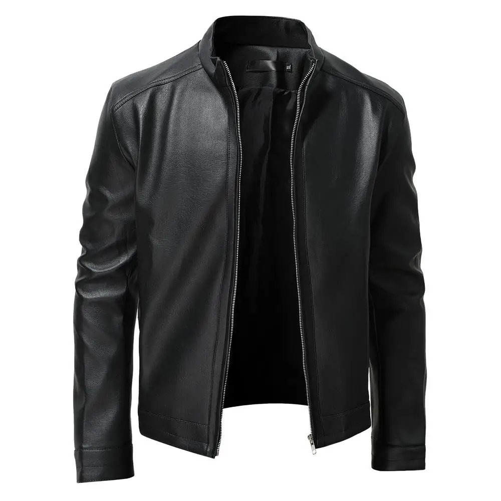 - > 2025 outono moda masculina jaqueta de couro fino ajuste gola jaqueta do plutônio masculino anti-vento motocicleta jaquetas com zíper masculino outerwear