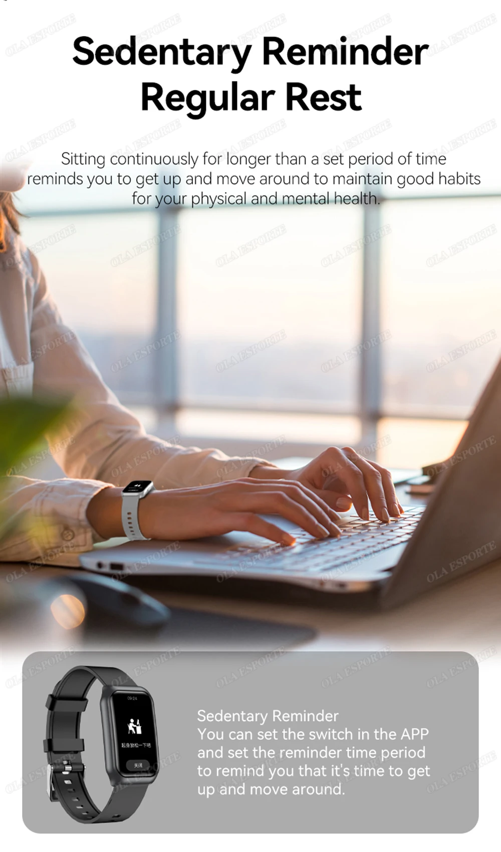 * Notificação de informações de suporte, pedômetro em tempo real, registro de sono