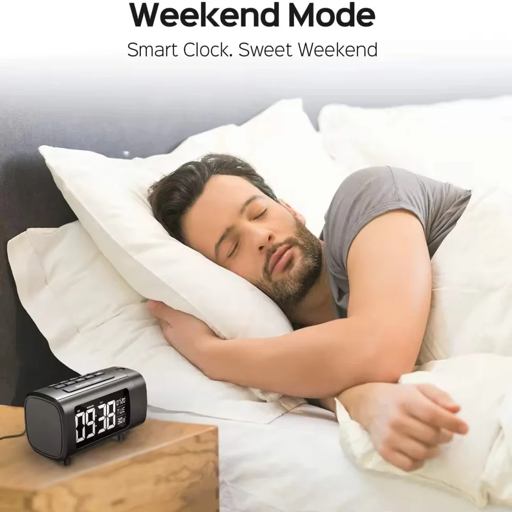 MODO SNOOZE E WEEKEND - Quando o alarme dispara, você pode pressionar o grande botão SNOOZE para tirar uma soneca extra de 9 minutos se não quiser se levantar imediatamente.No modo fim de semana, os despertadores nunca tocarão para perturbar seu sono nos finais de semana.