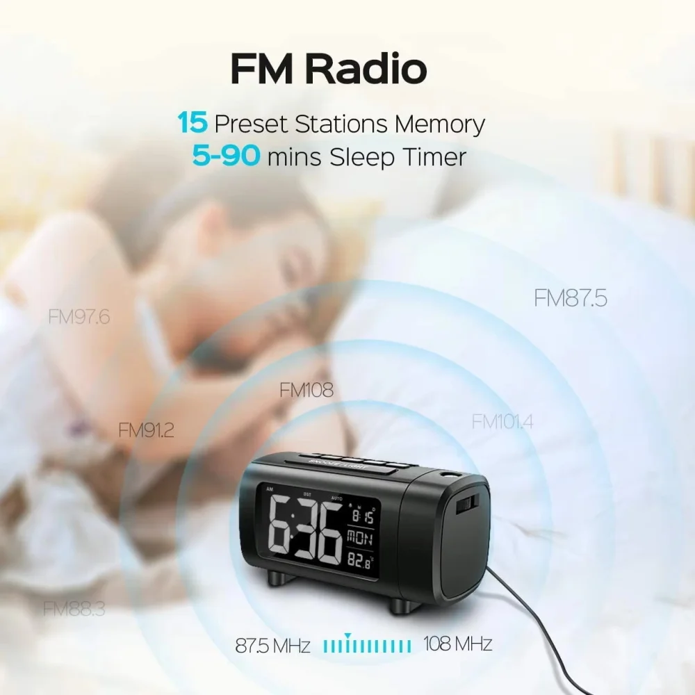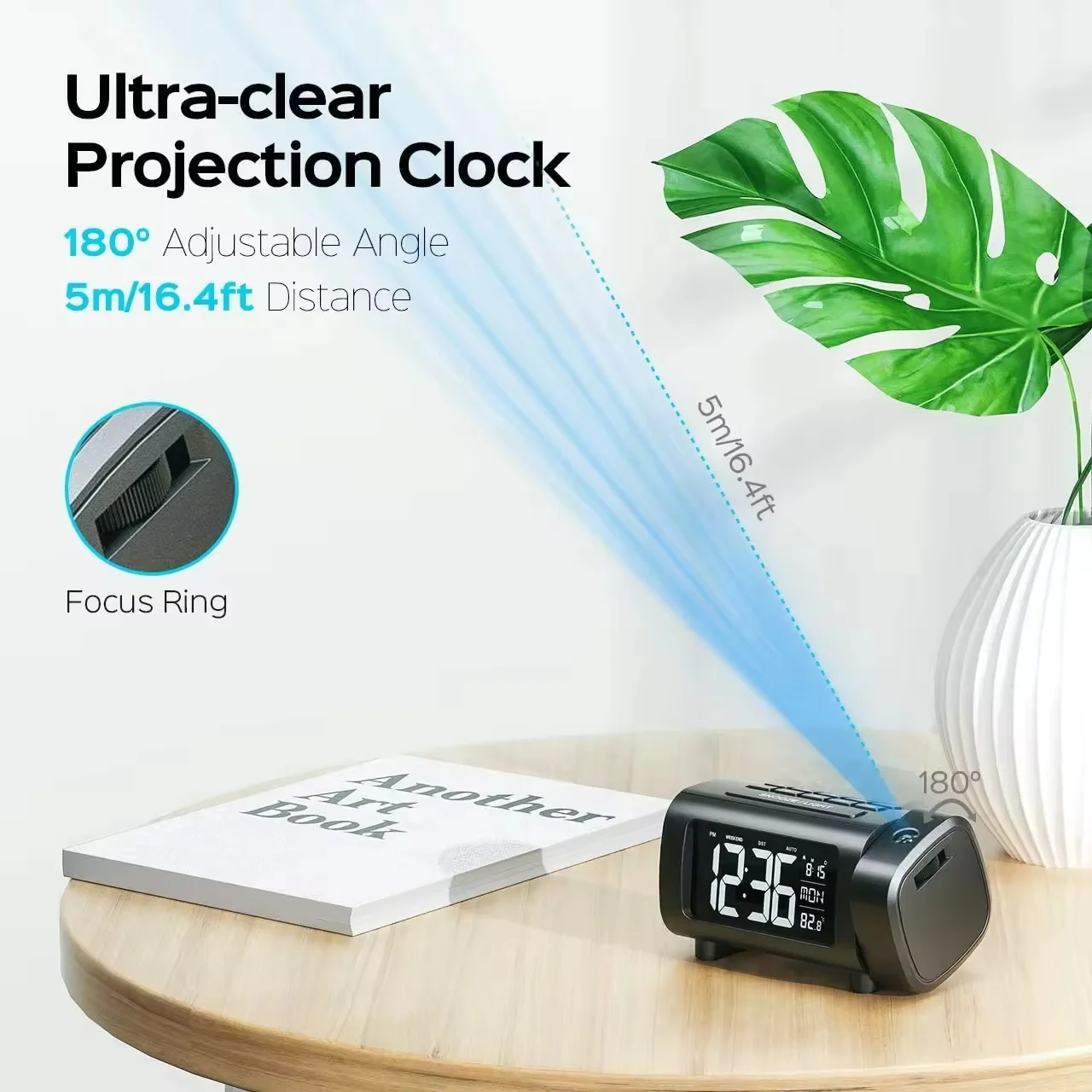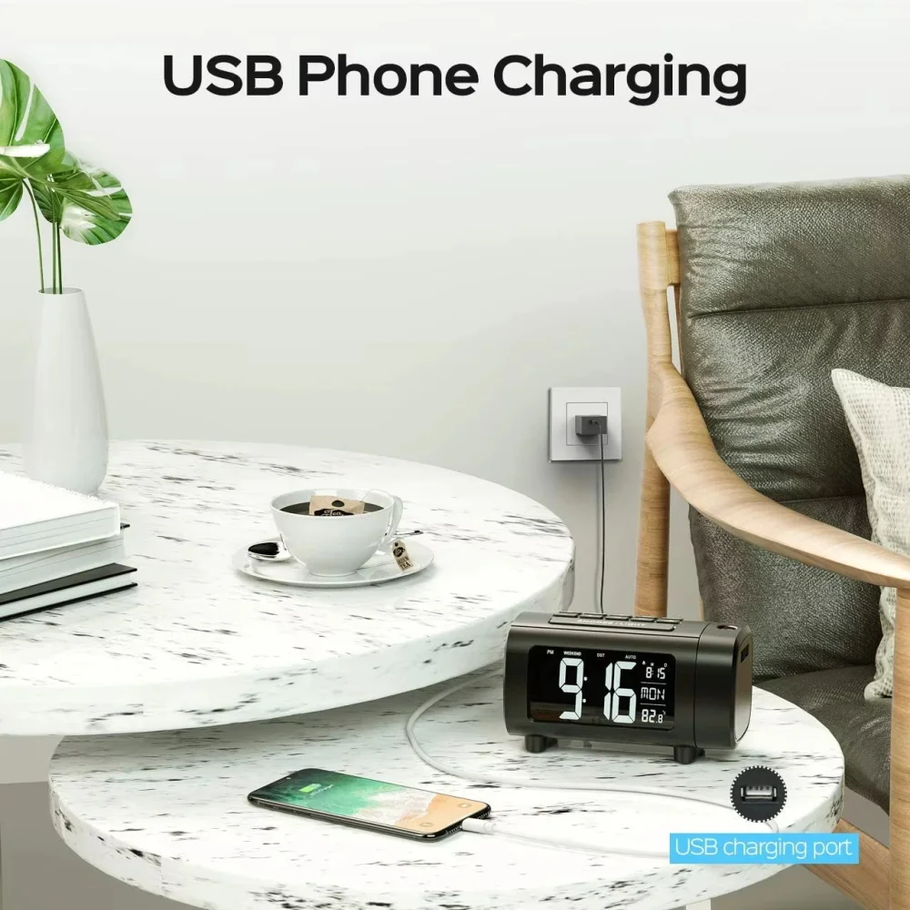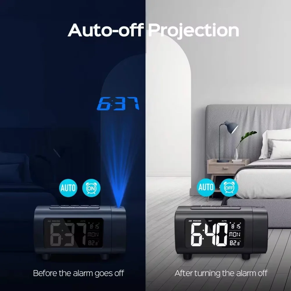 2025 rádio projeção despertador digital despertador quarto monitor de temperatura 4 níveis dimmer 12/24h mesa mudo despertador