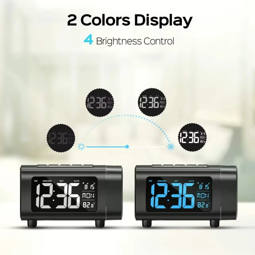 - > 2025 rádio projeção despertador digital despertador quarto monitor de temperatura 4 níveis dimmer 12/24h mesa mudo despertador