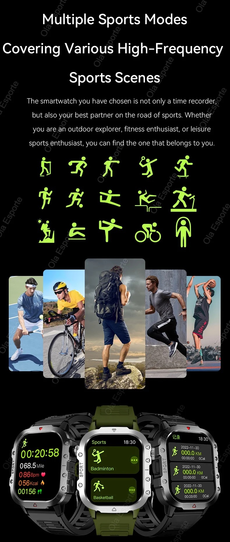 - > 2025 relógio inteligente militar robusto relógio masculino 2.01 Polegada hd tela de toque voz bluetooth chamada lanterna led ao ar livre smartwatch homem