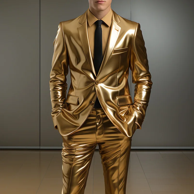 - > 2025 terno de ouro bronzeado moderno masculino, palco de festa, terno de desempenho brilhante e legal