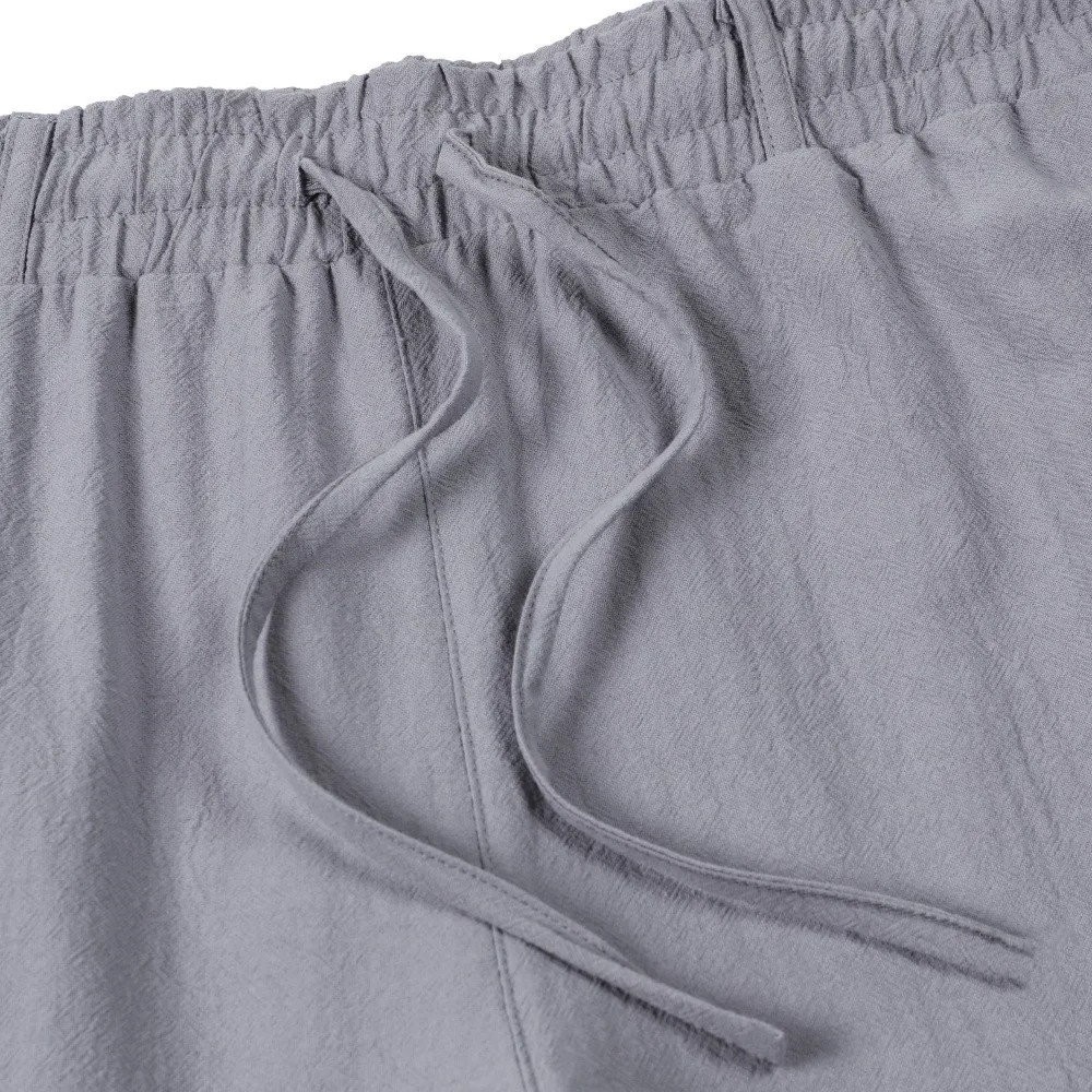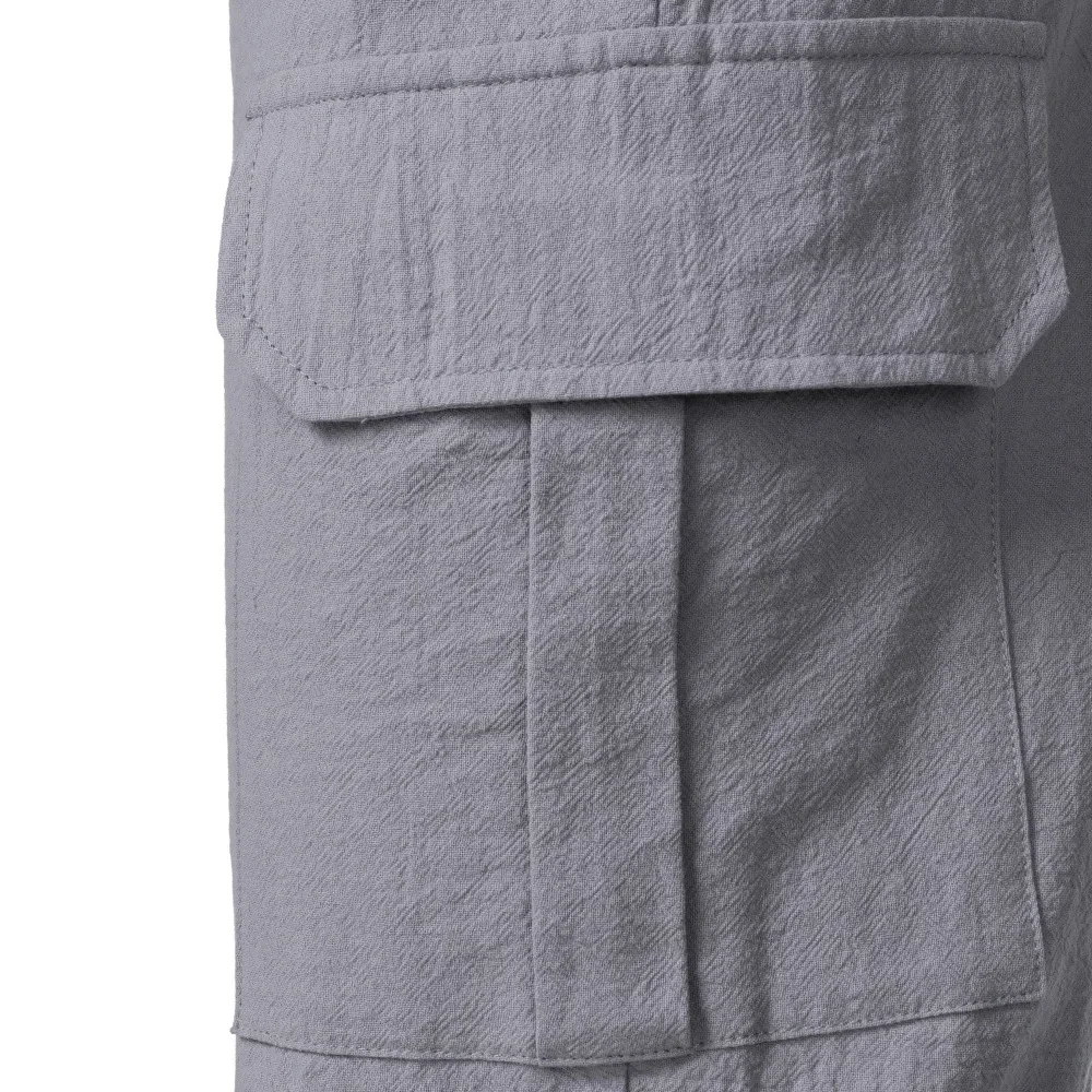 - > 2026 calças masculinas europeias e americanas de algodão e linho multi-bolso calças de trabalho soltas retas roupas esportivas e calças casuais