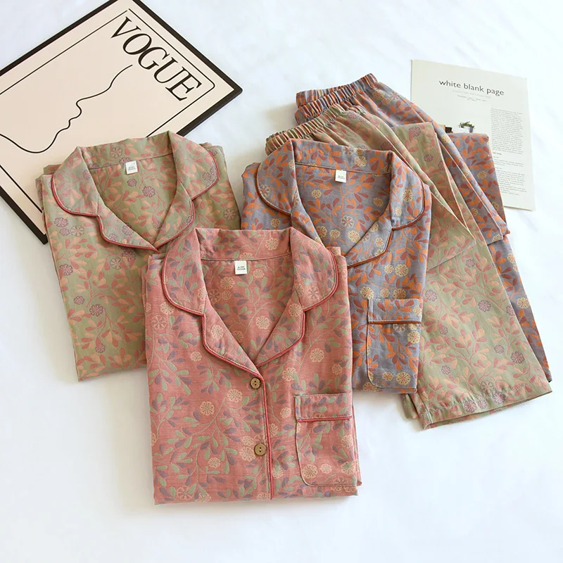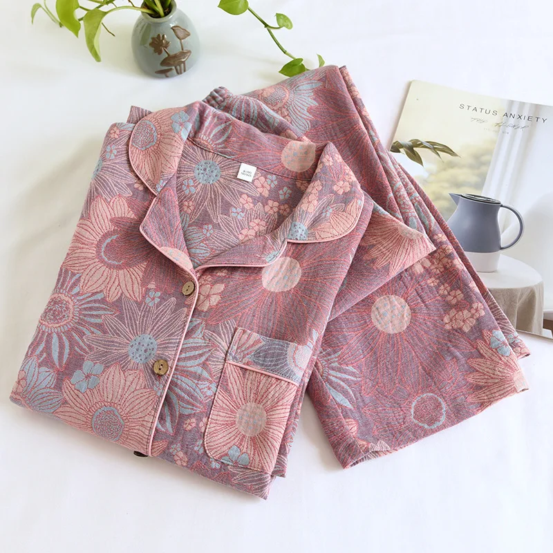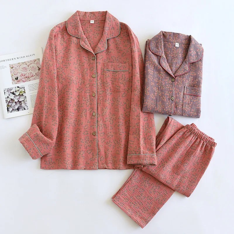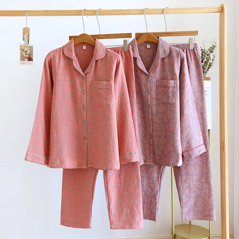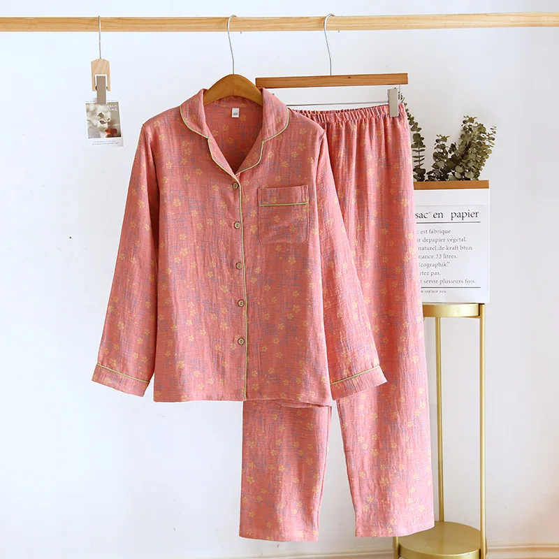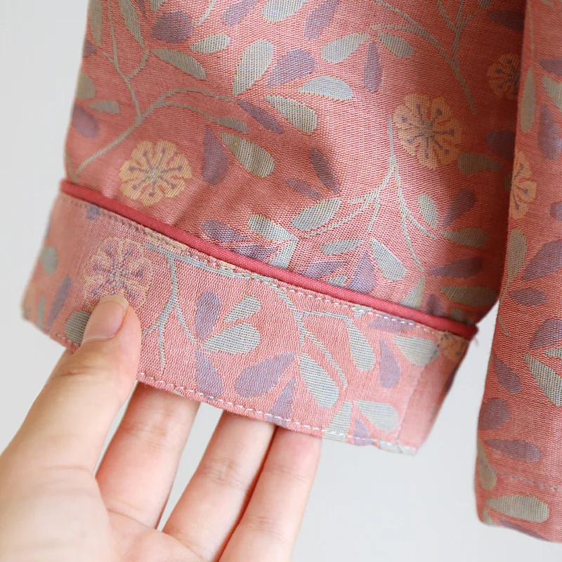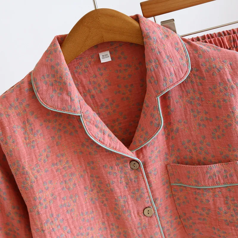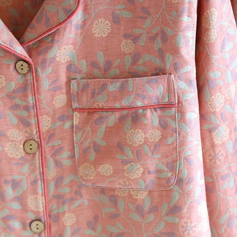 - > 2026 novo conjunto de pijama feminino primavera e outono 100% algodão jacquard manga longa duas peças simples cardigan mobiliário doméstico