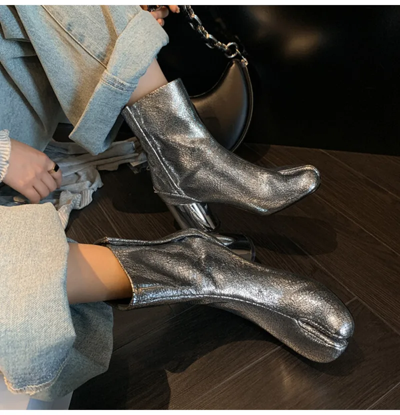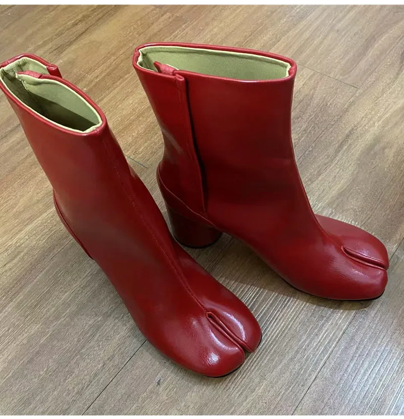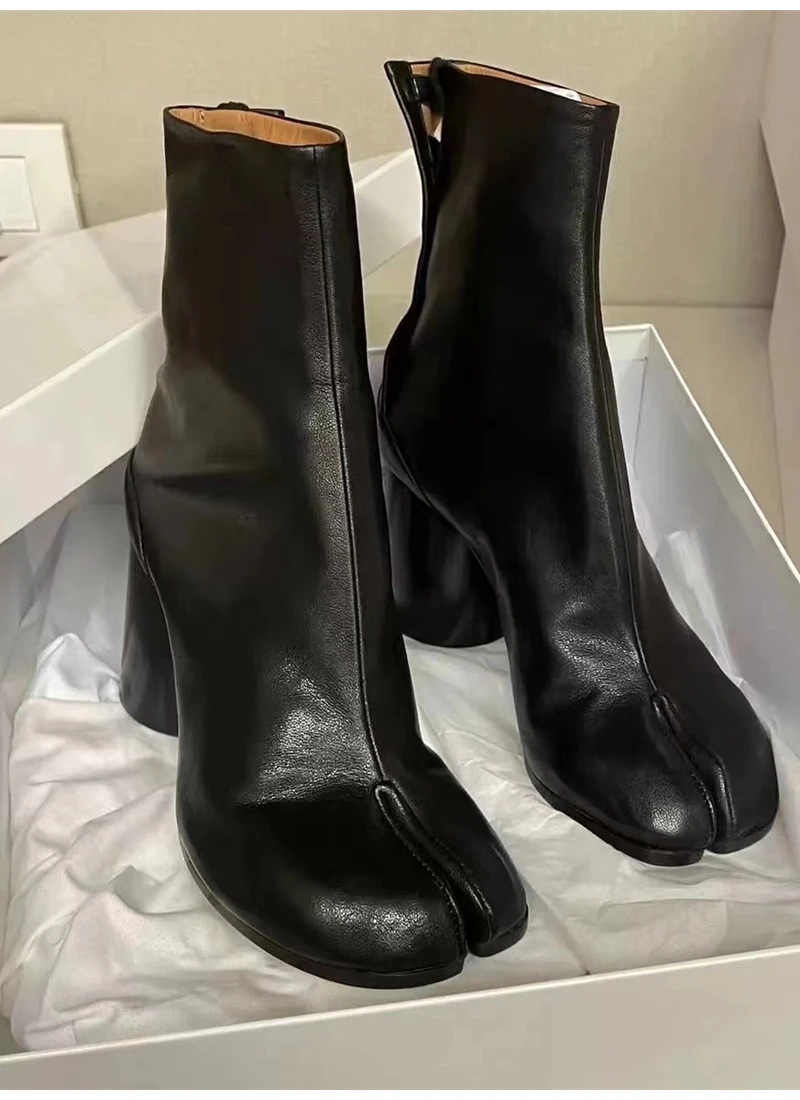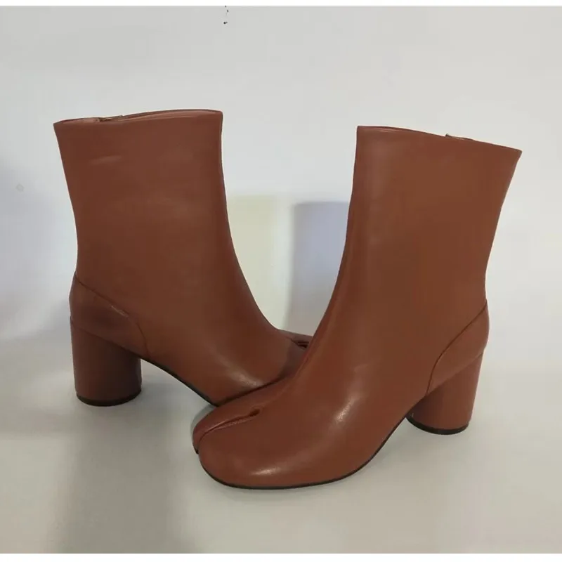 - > 2026 outono inverno couro macio split toe tabi botas de tornozelo feminino moda zip grosso salto alto chelsea sapatos grossos botas curtas