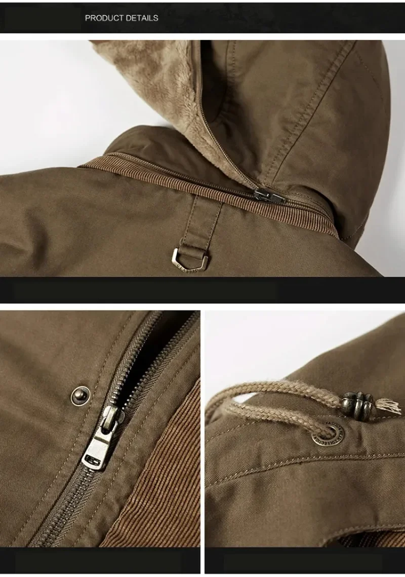 - > 2026 parka jaqueta de inverno masculina ao ar livre mais veludo grosso quente multi bolso jaquetas sólida parkas casaco masculino roupas tamanho grande