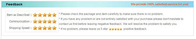 2. Se tiver qualquer problema, por favor, não hesite em nos contactar antes de ABRIR UMA RECLAMAÇÃO ou deixar um feedback Neutro/Negativo com uma avaliação inferior a 4 estrelas. Faremos sempre o possível para resolver a situação!