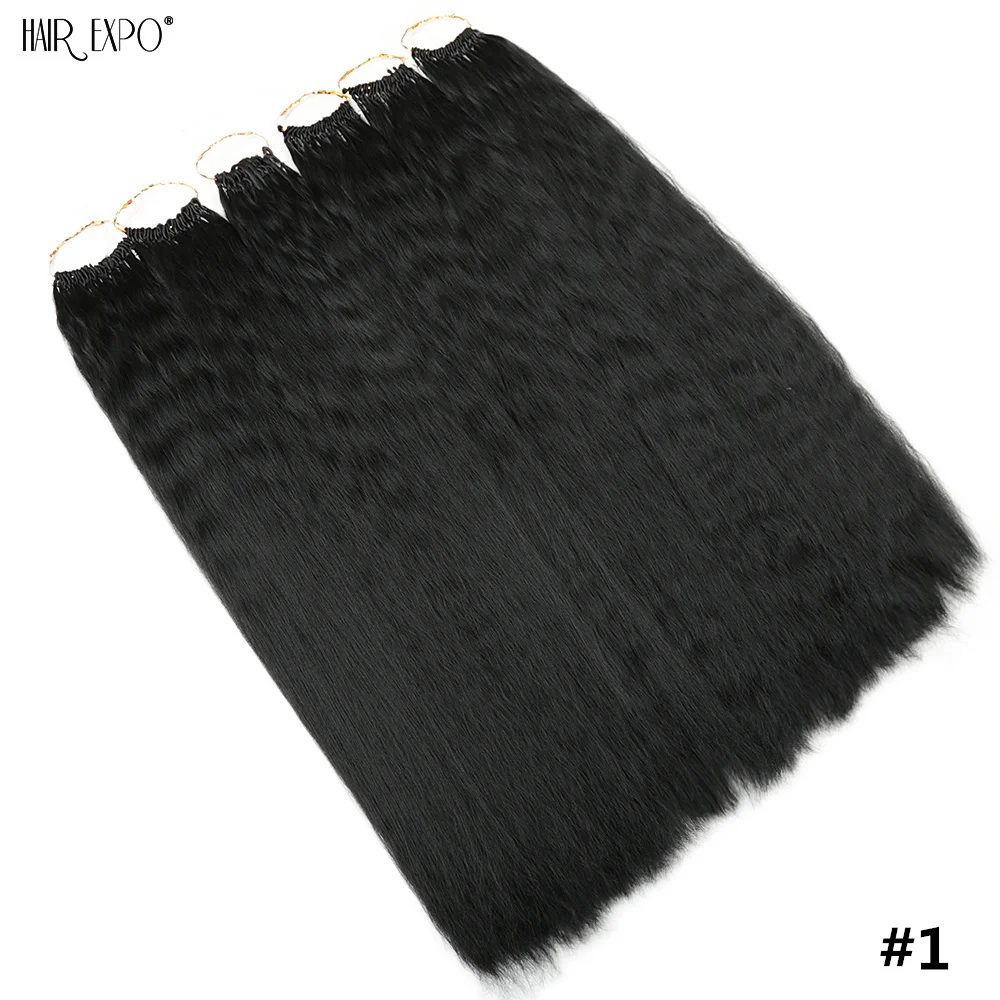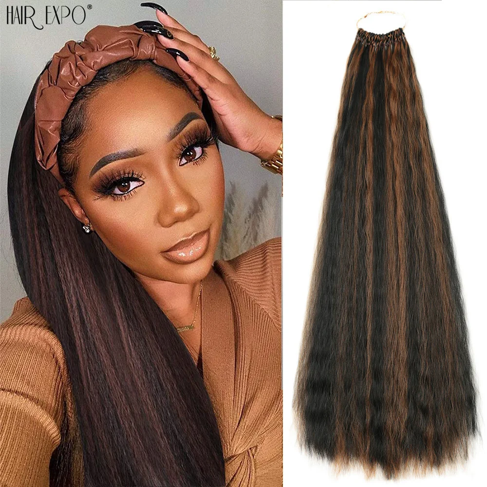 - > 22 ”extensões de cabelo sintético macio yaki em linha reta crochê cabelo pré looped kinky encaracolado ombre trança feixes de cabelo expo cidade