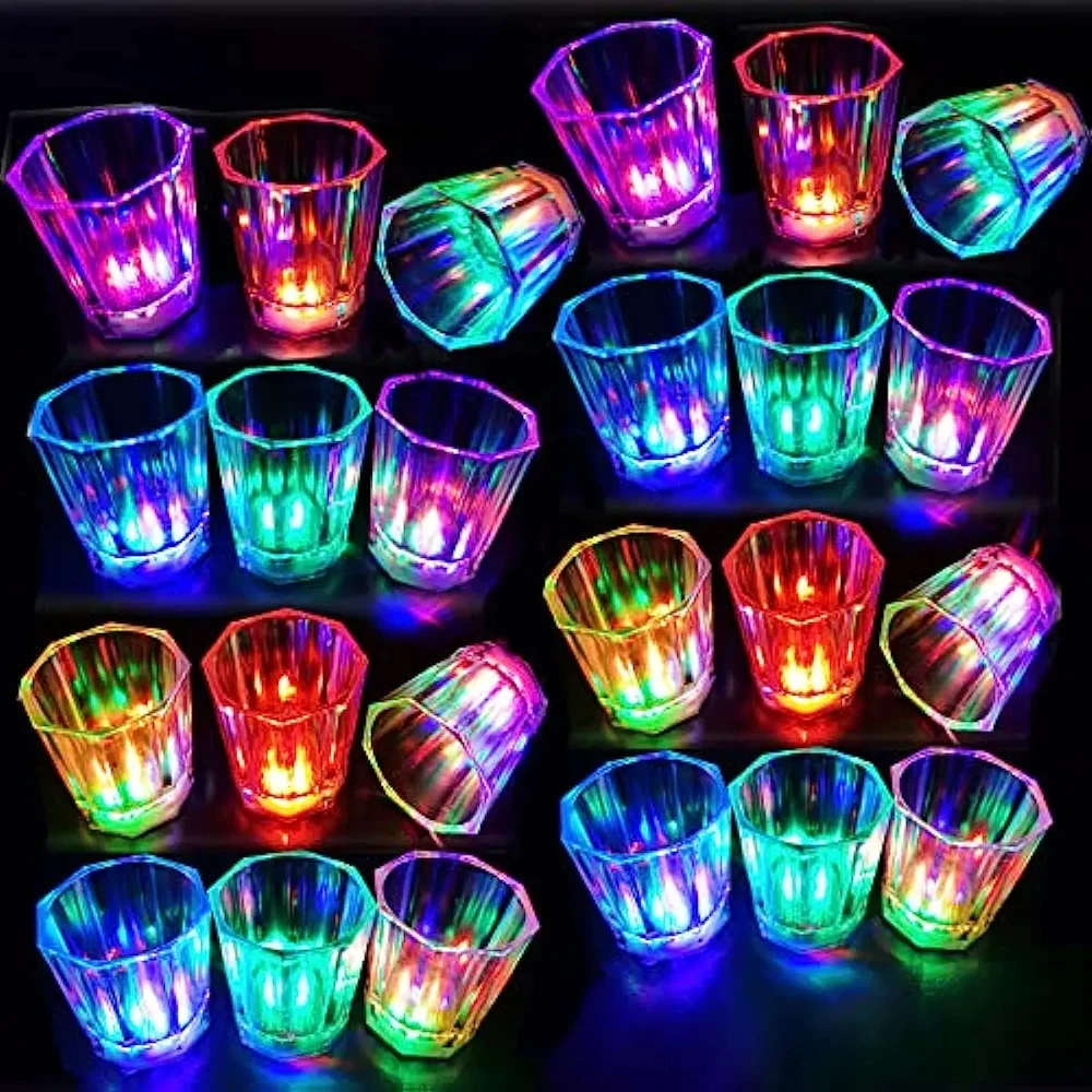 24 pçs led copo brilhante iluminar copo de tiro led flash beber óculos iluminar óculos de tiro festa brilho no escuro favores de festa