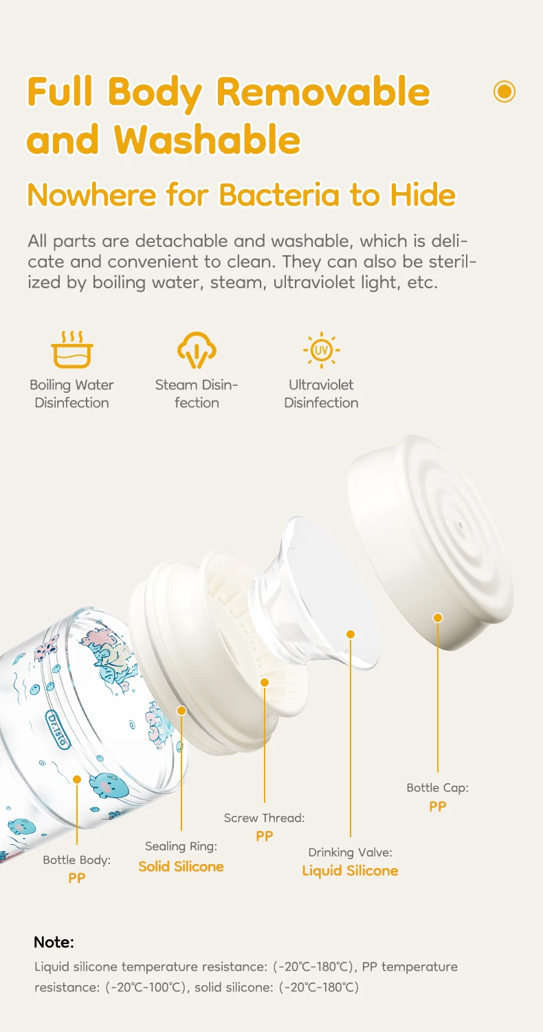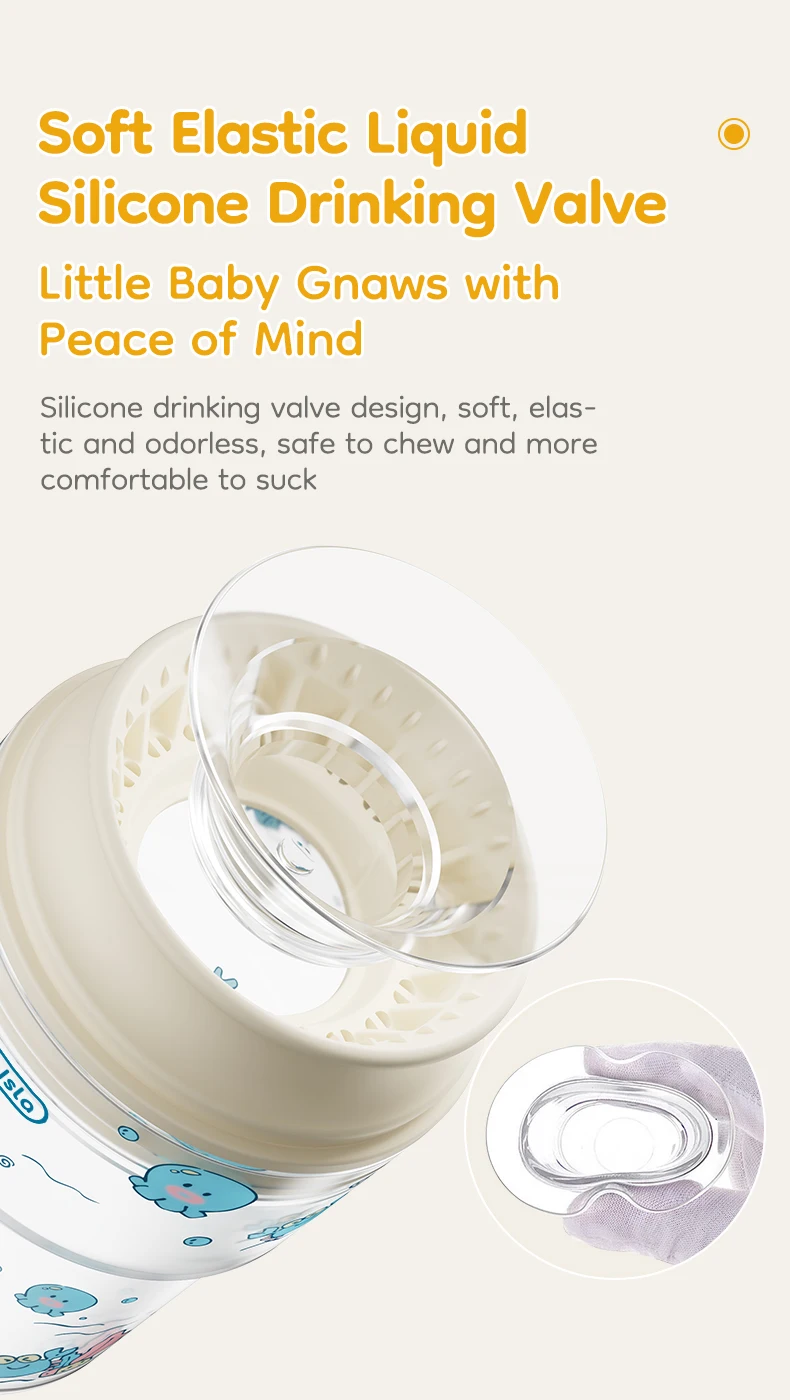 2.A válvula de bebida de silicone líquido macia e elástica é incolor, não tóxica, segura para morder e proporciona uma experiência de sucção mais confortável.