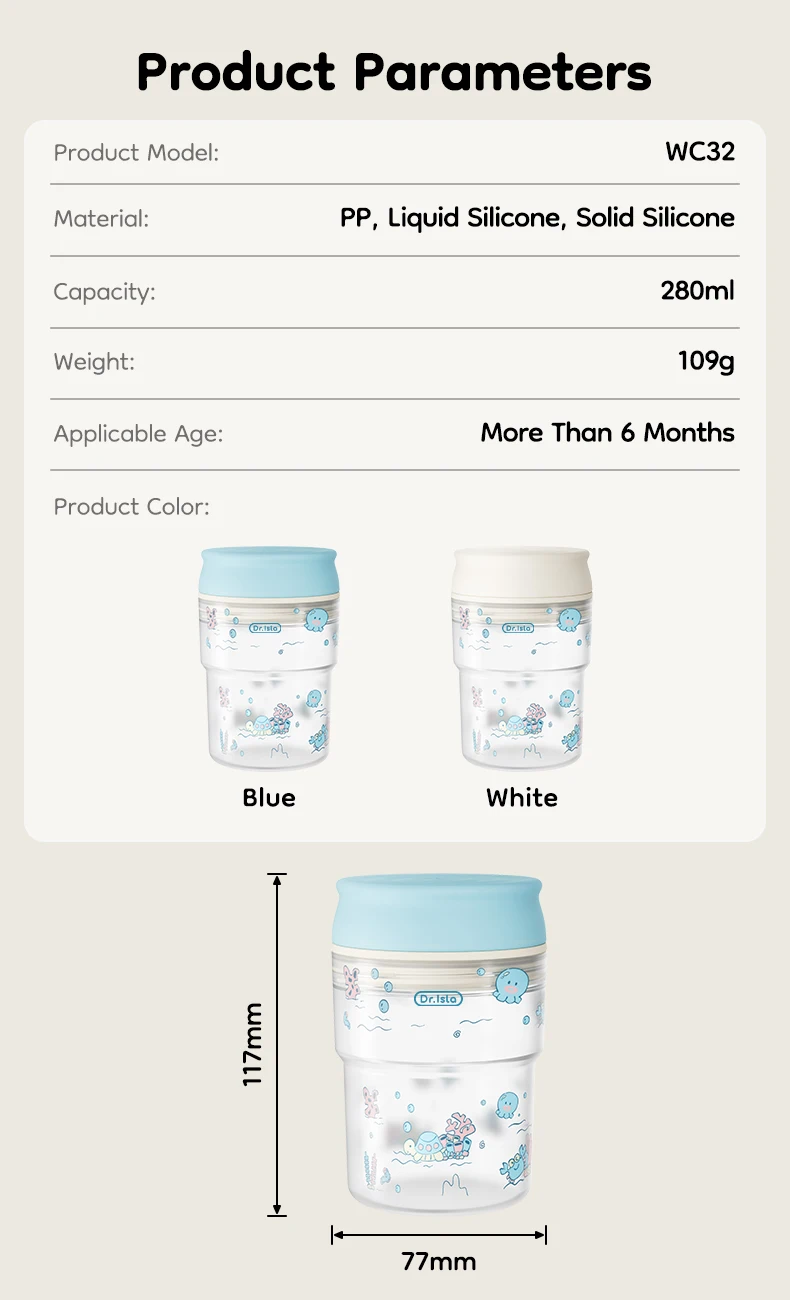 - > 280ml novo bebê aprendizagem beber copo 360 graus de água potável bebê sucção copo tampa flip à prova de vazamento crianças copos de água bpa livre