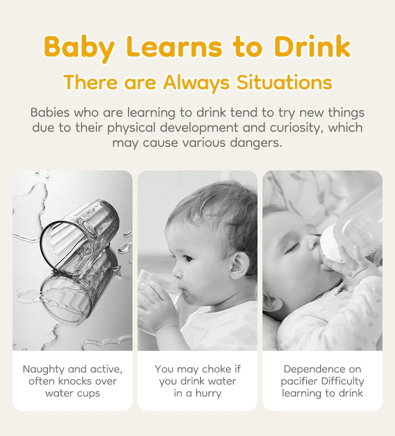1.Beba água livremente em 360°°, facilitando o aprendizado de beber.