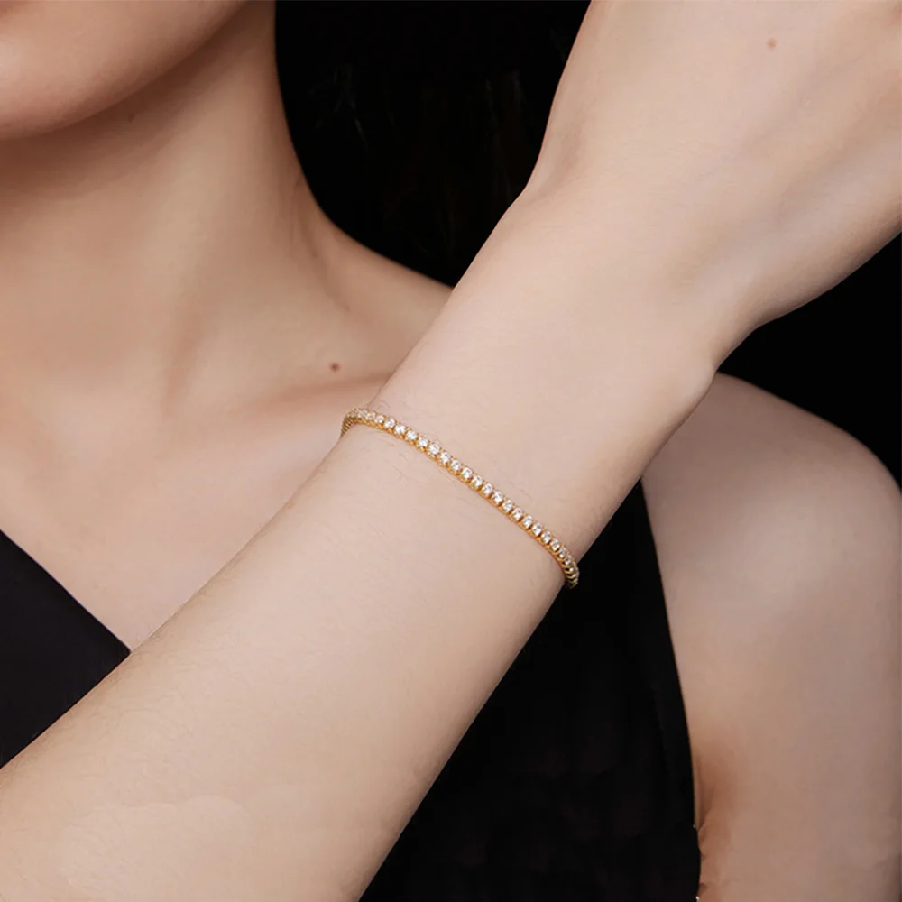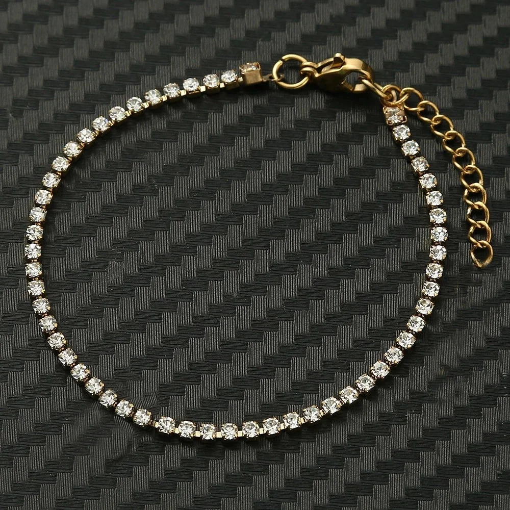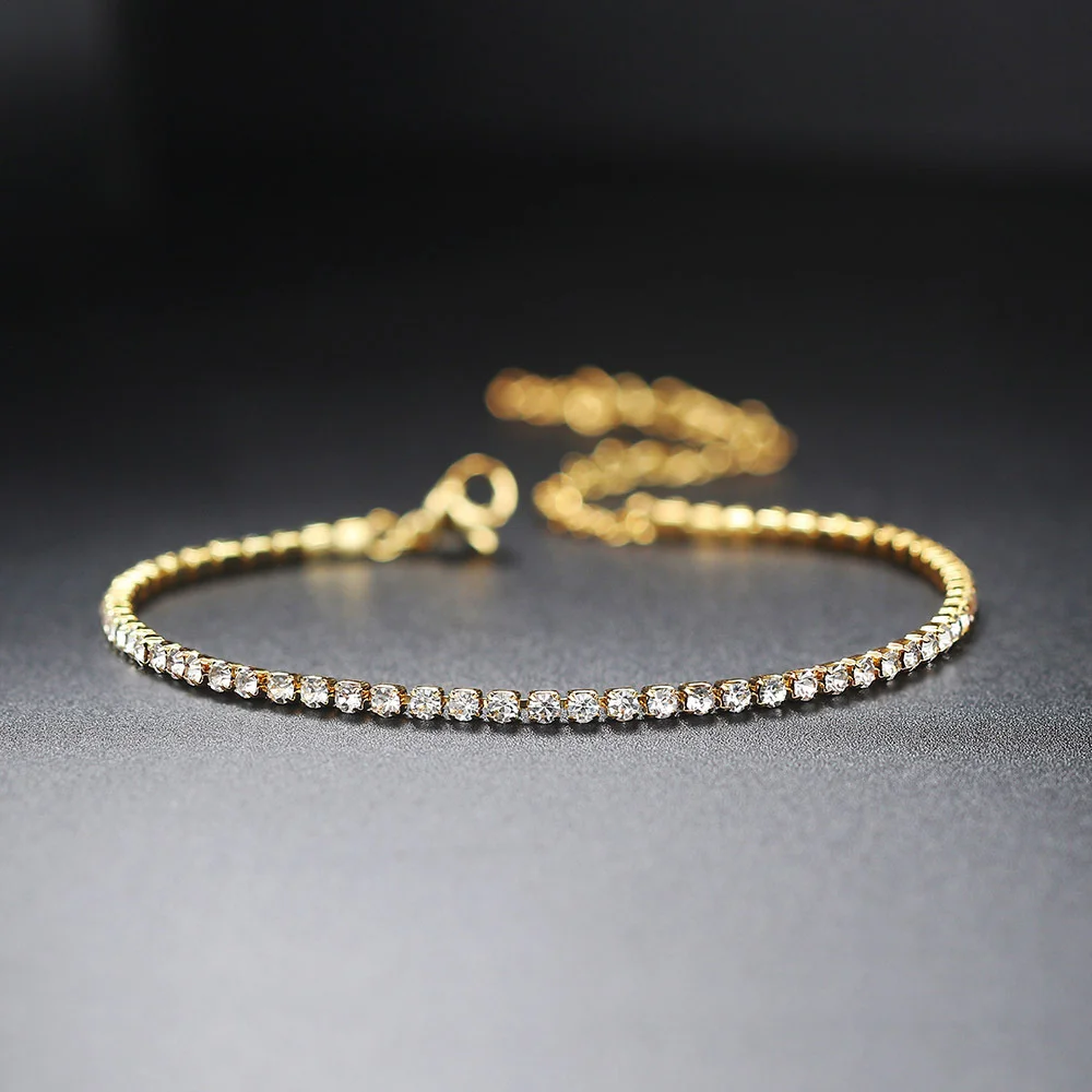 2mm Dainty Iced Out Tennis Chain Bracelets Female Gold Color Stainless Steel Cubic Zirconia Hand Chain for Women Jewelry Gift