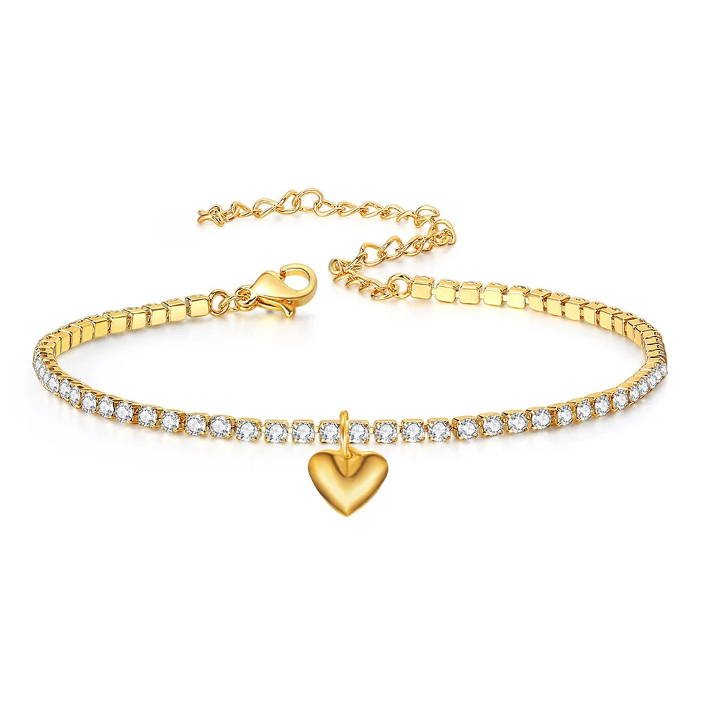 2mm delicado iced out tênis corrente pulseiras feminino cor de ouro aço inoxidável zircônia cúbica corrente mão para mulheres jóias presente