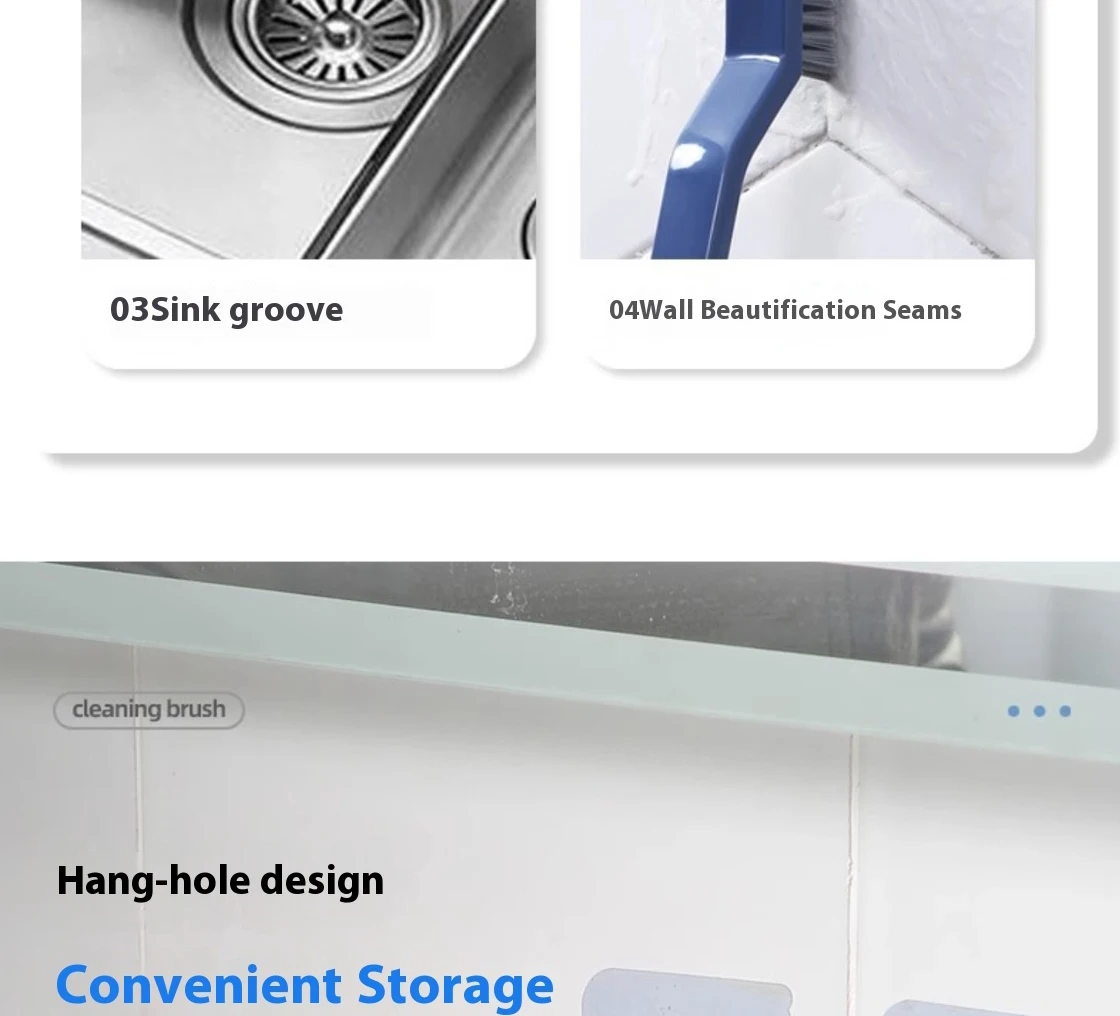 3. toda a escova de limpeza tem seu próprio orifício de suspensão. Após a limpeza, pode ser pendurado no tubo de drenagem sem ocupar espaço.