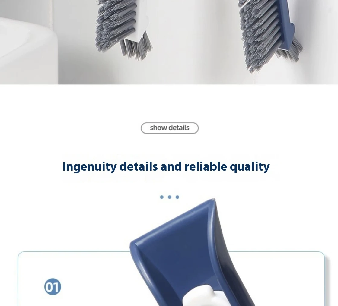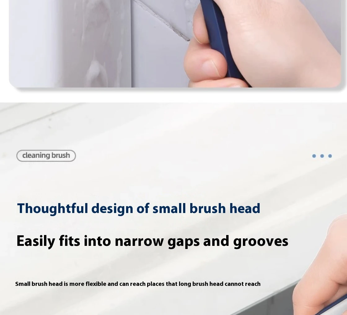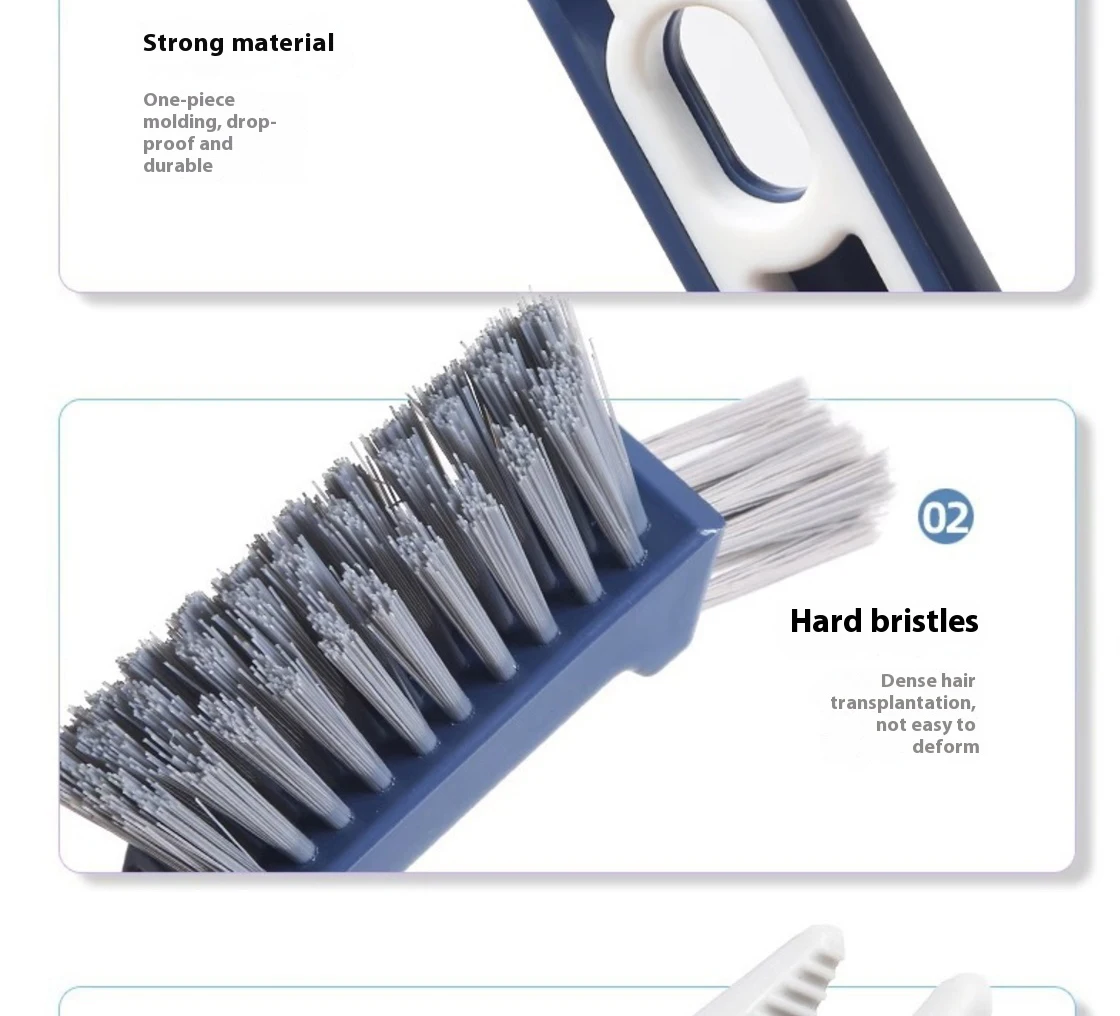 1.As cerdas em forma de V são feitas de material PP.O material é durável e não risca a superfície.E as cerdas também são projetadas na frente das cerdas triangulares para limpar de forma mais eficaz e conveniente o espaço que não pode ser aproximado.