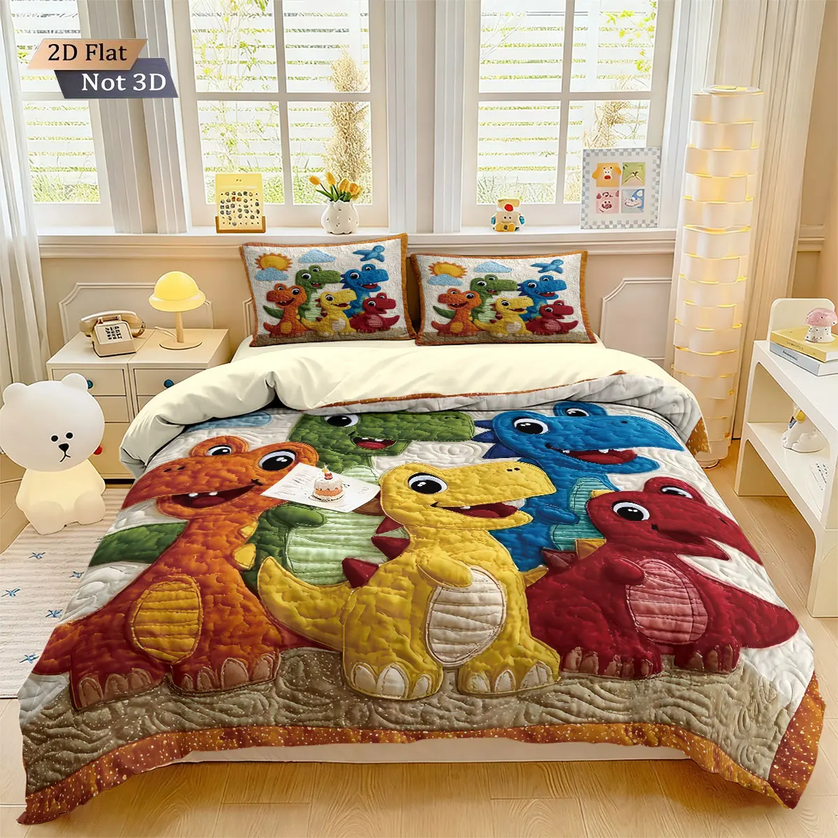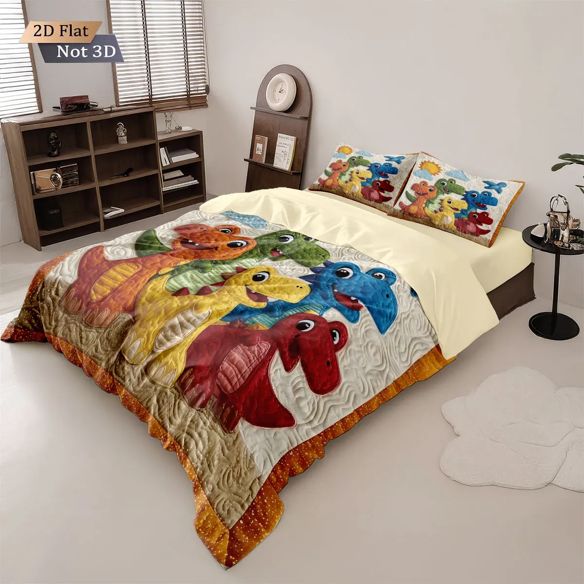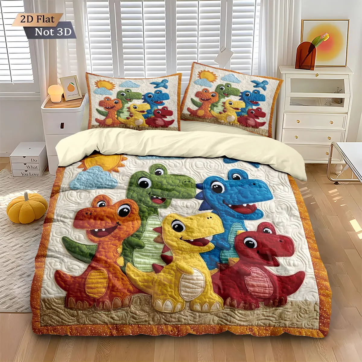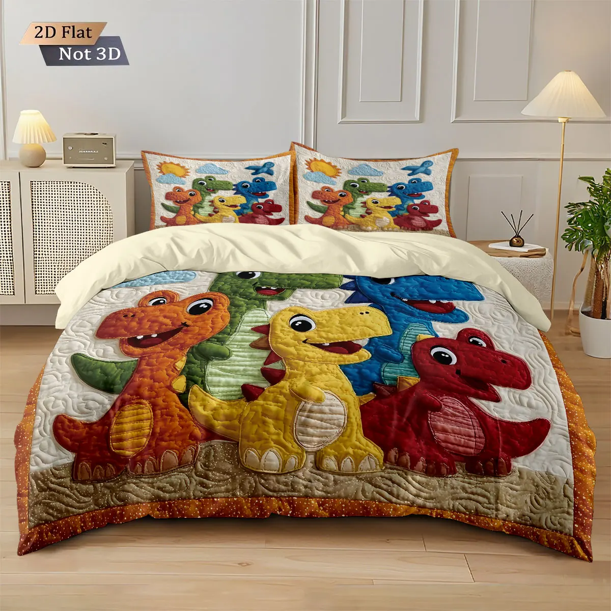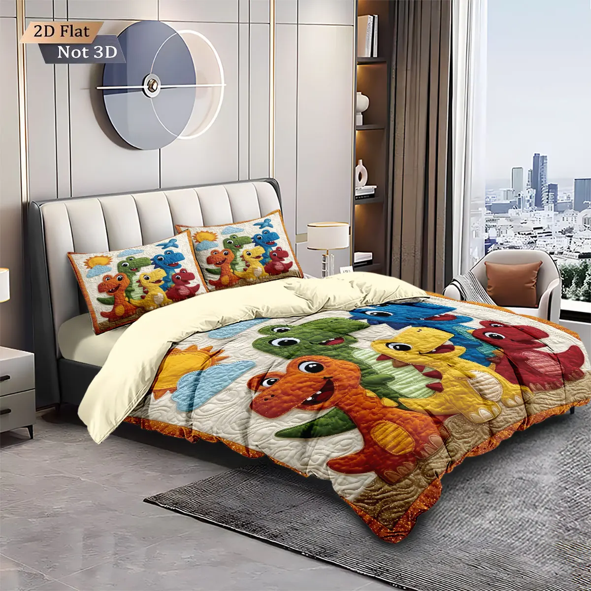 3 pçs dos desenhos animados dinossauro animal impressão coreless para baixo consolador conjunto confortável quarto dormitório cama decoração máquina lavável