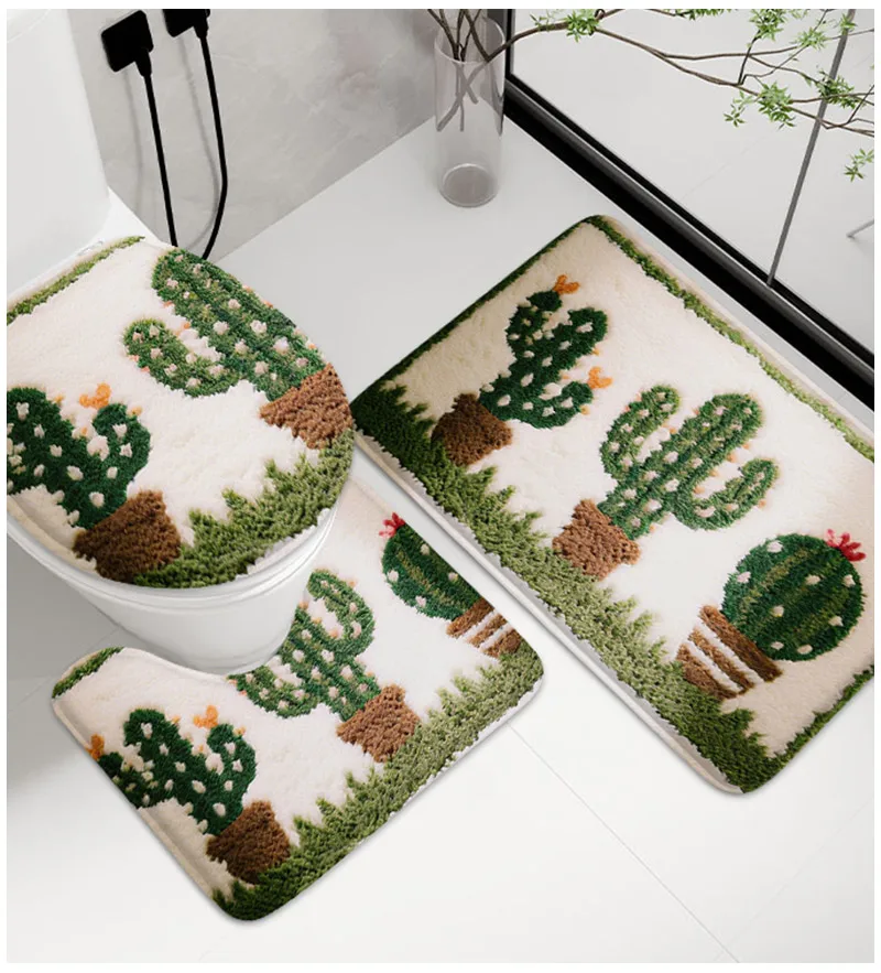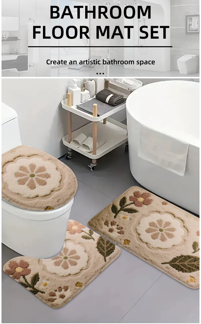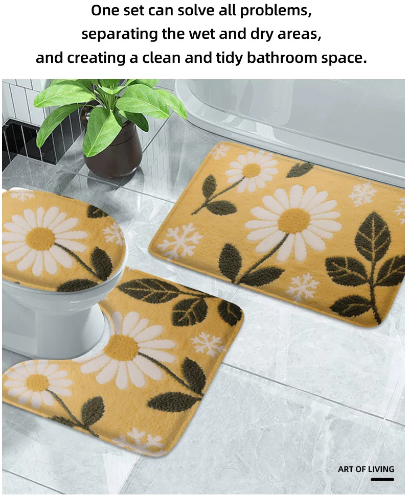 3 pçs estilo coreano casa toalete em forma de u tapete tampa do toalete tapete da porta do banheiro tapete absorvente flanela antiderrapante