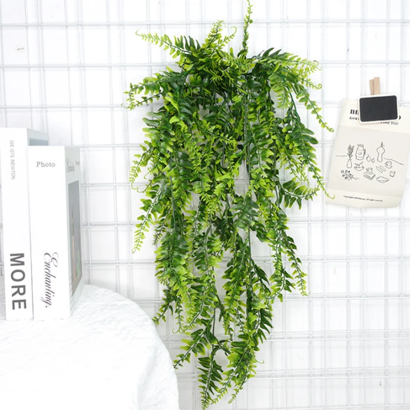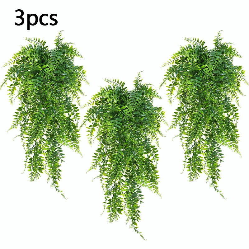 3 pçs folhas de samambaia persa casa jardim decoração do quarto pendurado planta artificial videira de plástico grama festa de casamento parede decoração para casa